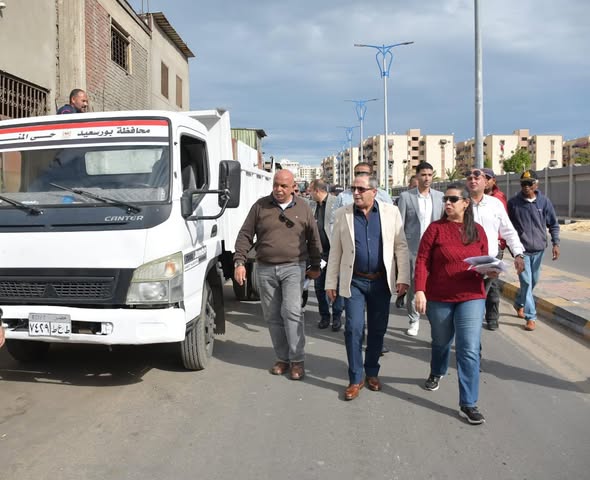 محافظ بورسعيد: يشدد على إزالة كافة التعديات والإشغالات وإغلاق محلات فرز القمامة بمنطقة C6 بحي المناخ