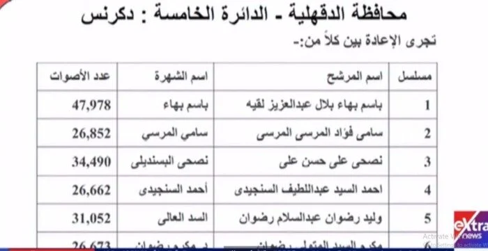 كما تُجرى جولة الإعادة في الدائرة الخامسة بدكرنس بين باسم بهاء، وسلمى المرسي، ونصحي البسنديلي، وأحمد السنجيدي، ووليد رضوان، ومكرم رضوان.