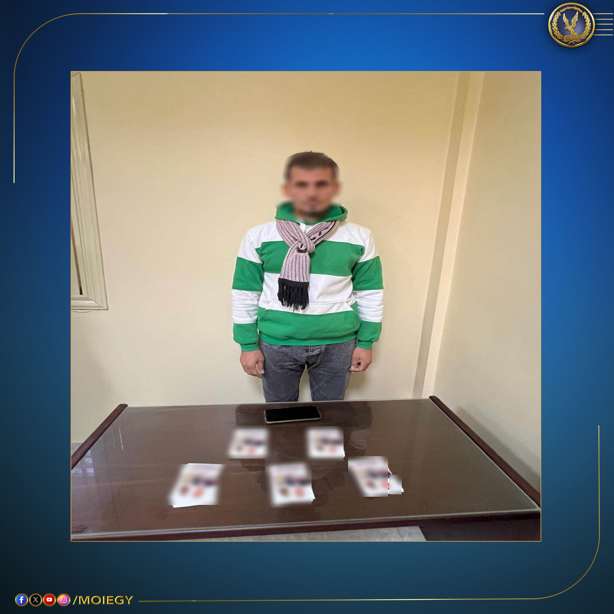 "حيث تمكنت الخدمات الأمنية المختصة من ضبط المتهم، واتُخذت ضده الإجراءات القانونية، وتولت النيابة العامة التحقيق.