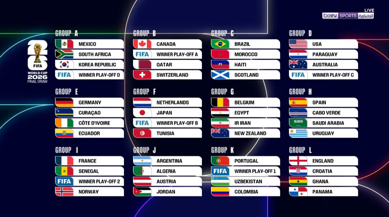 وجاء منتخب مصر الأول لكرة القدم، بالتصنيف الثالث، بين 48 منتخبًا مشاركًا في نهائيات كأس العالم 2026، إلى جانب منتخبات، وكان التصنيف كالتالي: