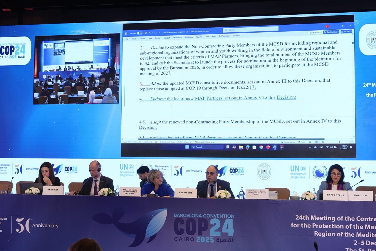 وأضافت د. منال عوض أنه تم كذلك اعتماد القرارات المتعلقة بمنع التلوث البحرى من السفن ، والتقارير الفنية (MedECC) المتعلقة بربط القضايا البيئية الخاصة بتغيرات المناخ والماء والغذاء والطاقة والنظم الايكولوجية بالبحر المتوسط، مُشيرةً إلى أن الجلسة الختامية شملت أيضاً القرارات الخاصة بمعايير عمل اللجنة المتوسطية للتنمية المستدامة ٢٠٢٦/ ٢٠٣٥ وتحديث نموذج الابلاغ الخاص عن مصادر التلوث من المصادر البرية ، كما تم اعتماد النهج البيئى للرصد لخارطة الطريق خلال الفترة من ٢٠٢٦ /٢٠٣٥ .