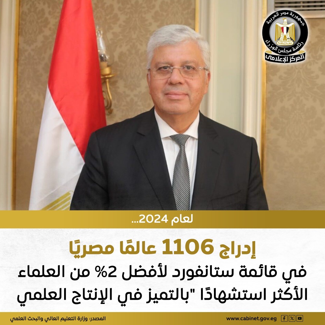 أظهرت النتائج إدراج 1106 عالمًا مصريًا في نسخة القائمة الخاصة بالتميز في الإنتاج العلمي، وإدراج 579 عالمًا مصريًا في نسخة القائمة لمجمل الإنتاج العلمي لعام 2024.