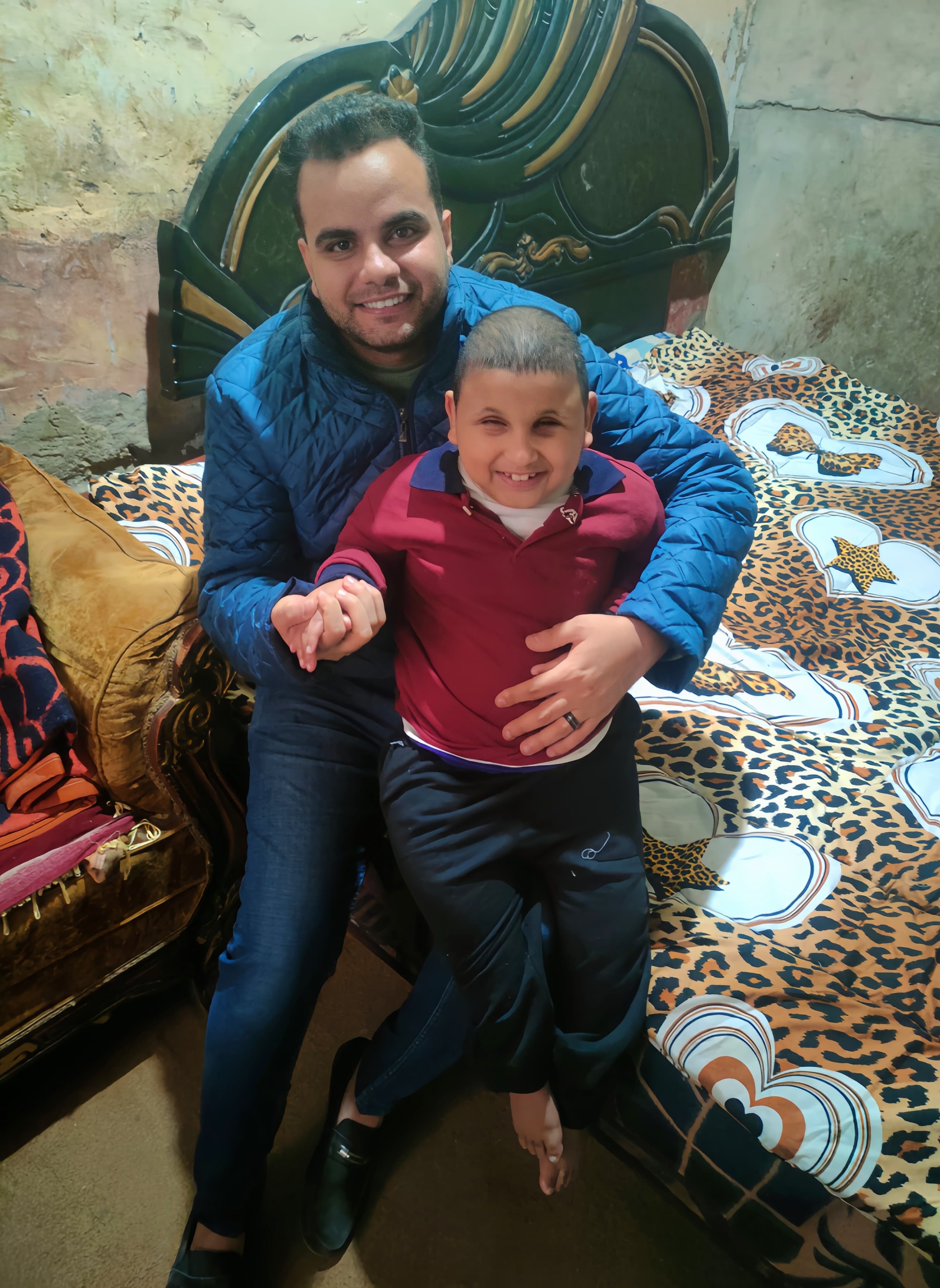 داخل منزل بسيط لا يليق بآدمية سكانه، كشفت لنا الأسرة عن فصول المعاناة التي يعيشها "زياد" البالغ من العمر 9 سنوات (الصف الثالث الابتدائي)، فالصغير لم يولد قعيداً، بل ولد كفيفاً فقط وكان يمارس حياته ويمشي على قدميه، حتى داهمه مرض نادر وشرس يُعرف بـ "العظم الزجاجي" (Osteogenesis Imperfecta)، وهو المرض الذي حول عظامه إلى هشاشة كالزجاج، ما أدى إلى تكسرها ومنعه من الحركة نهائياً، ليصبح أسيراً لكرسي متحرك وظلام دائم، ورغم قسوة الابتلاء المزدوج (فقدان البصر والحركة)، ظل "زياد" راضياً مبتسماً، يحمل في قلبه نوراً هزم به عتمة أيامه.