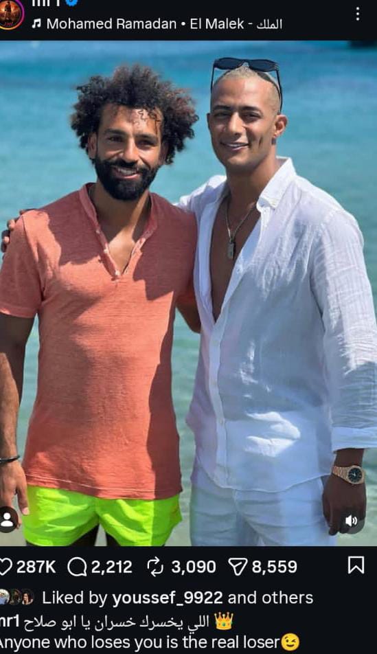كما دعم النجم محمد رمضان محمد صلاح في أزمته، حيث نشر صورة تجمعه به عبر حسابه بموقع التواصل الاجتماعي “انستجرام”، حيث وضع عليها أغنيته “الملك”، وعلق عليها قائلا: "اللي يخسرك خسران يا أبو صلاح".