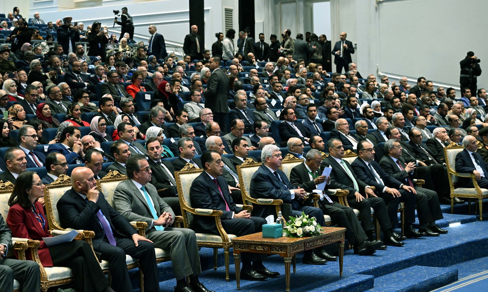 نيابة عن الرئيس عبد الفتاح السيسي، رئيس الجمهورية، شهد صباح اليوم الدكتور مصطفى مدبولي، رئيس مجلس الوزراء، انعقاد الجمعيـة العامة للشـــراكة بيــن الأكاديميـات(IAP) والمعرض الدولي لتسويق مخرجات البحوث (IRC EXPO 2025)، بالعاصمة الجديدة، والتي تعقد تحت رعاية الرئيس عبد الفتاح السيسي، رئيس الجمهورية، بحضور الدكتور خالد عبد الغفار، نائب رئيس مجلس الوزراء للتنمية البشرية، وزير الصحة والسكان، والفريق مهندس كامل الوزير، نائب رئيس الوزراء للتنمية الصناعية، وزير الصناعة والنقل، وعدد من الوزراء، وعدد من مسئولي وقيادات الأكاديمية العسكرية المصرية، والكلية الفنية العسكرية، والمراكز البحثية الفنية بالقوات المسلحة، ورؤساء عدد من الهيئات والجامعات والأكاديميات البحثية المصرية والعالمية، ونخبة من أساتذة الجامعات، و"الرئيس المشارك" بمنظمة IAP، وسفراء وممثلي عدد من الدول الأجنبية في مصر.