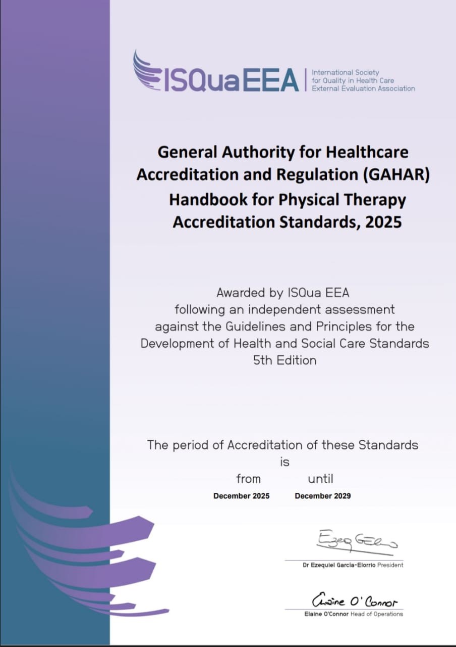 هيئة الاعتماد والرقابة الصحية تحصل على اعتماد ISQua لدليل مراكز العلاج الطبيعي 2025–2029