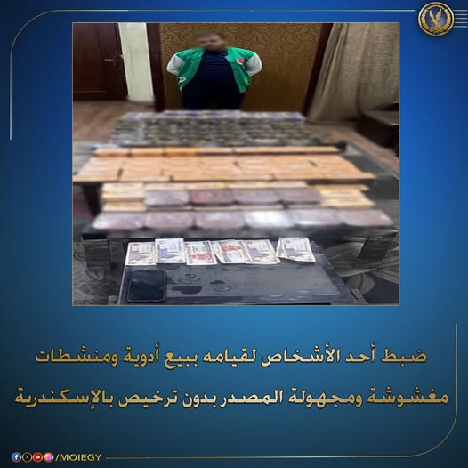 أكدت تحريات ومعلومات الإدارة العامة لحماية الآداب بقطاع الشرطة المتخصصة قيام أحد الأشخاص ببيع أدوية ومنشطات مغشوشة ومجهولة المصدر بدون ترخيص في محافظة الإسكندرية."