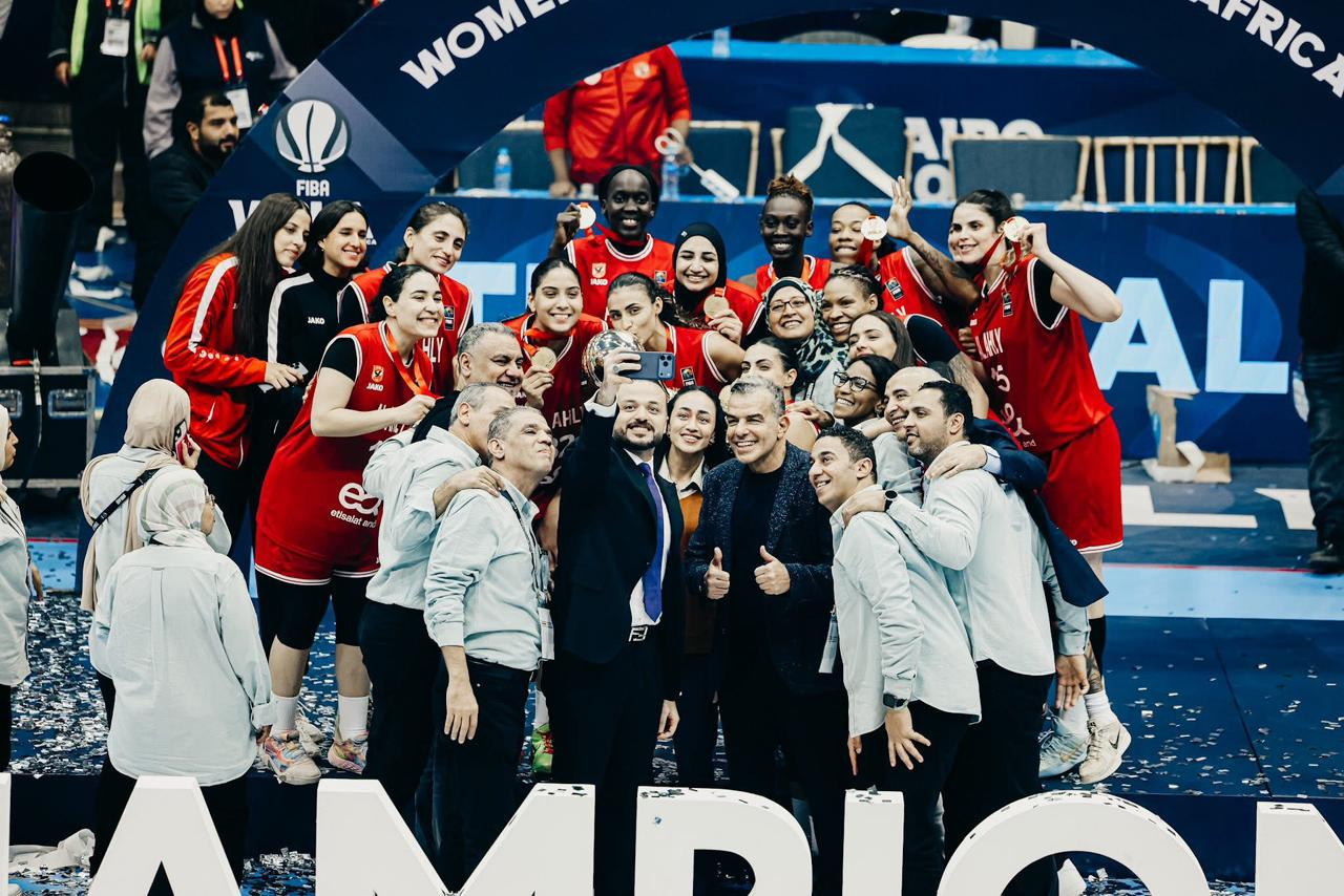 رئيس اللجنة المنظمة.. محمد الجارحي يحتفل مع سيدات الأهلي بكأس أفريقيا للسلة