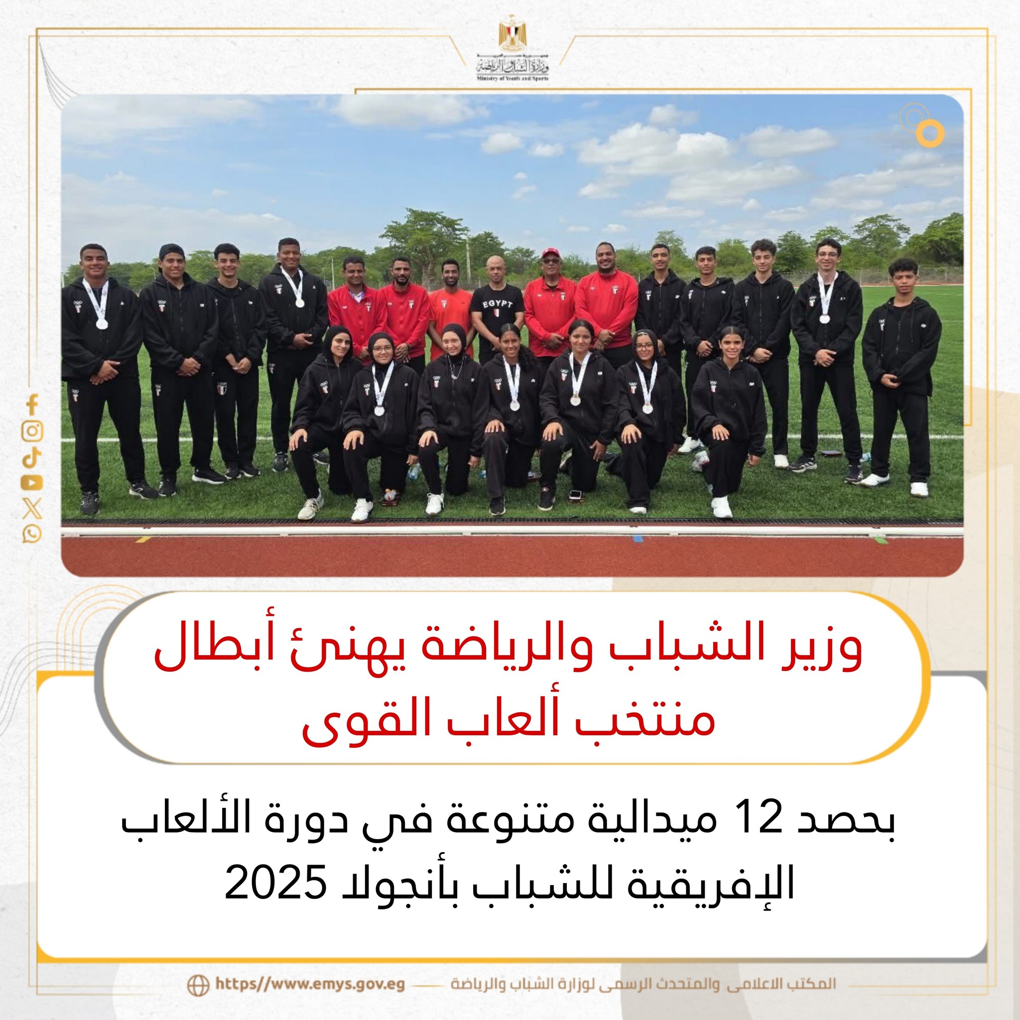 وزير الشباب يهنئ منتخب ألعاب القوى بحصد 12 ميدالية في دورة الألعاب الإفريقية للشباب بأنجولا 2025