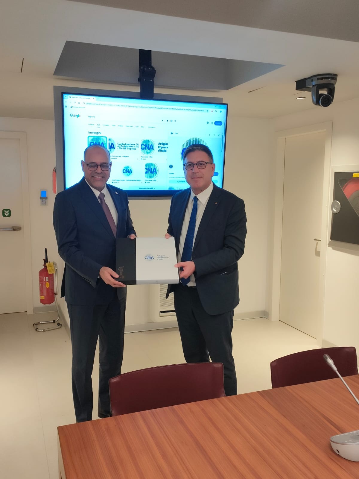 التقي وزير العمل محمد جبران، اليوم الأربعاء ، بالسيد داريو كوستانتيني، رئيس الاتحاد الوطني للحِرَف والمنشآت الصغيرة والمتوسطة في إيطاليا (CNA)،وذلك لبحث سبل تعزيز التعاون المشترك في مجالات التدريب المهني والتشغيل، وفتح آفاق جديدة أمام العمالة المصرية المدربة بسوق العمل الإيطالي.