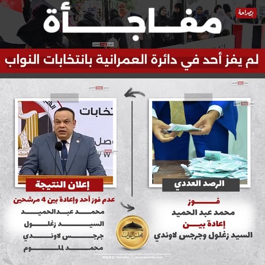 - مفاجاة لم يفز أحد في دائرة العمرانية بالجيزة في انتخابات النواب