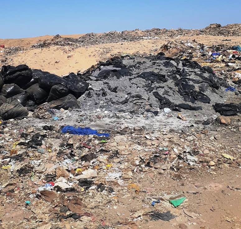 عقب رصد اللواء دكتور إسماعيل كمال محافظ أسوان أثناء جولته الصباحية لقيام إحدى الشركات الخاصة بإلقاء كميات من النفايات الطبية الخطرة بالمنطقة الجبلية المتاخمة لحى الصداقة الجديدة .