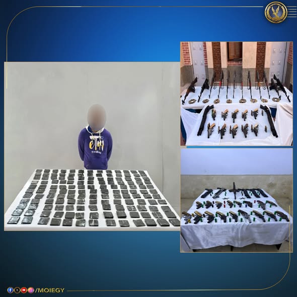 وفي سياق آخر، جهود وزارة الداخلية لمواصلة توجيه الضربات الاستباقية ضد البؤر الإجرامية والمتاجرين بالمواد المخدرة والأسلحة النارية غير المرخصة، أكدت معلومات وتحريات قطاعي (الأمن العام – مكافحة المخدرات والأسلحة والذخائر غير المرخصة)، بالتنسيق مع أجهزة الوزارة المعنية، قيام بعض البؤر الإجرامية في عدد من المحافظات، والتي تضم عناصر شديدة الخطورة، بجلب كميات كبيرة من المواد المخدرة والأسلحة النارية غير المرخصة تمهيدًا للاتجار بها.