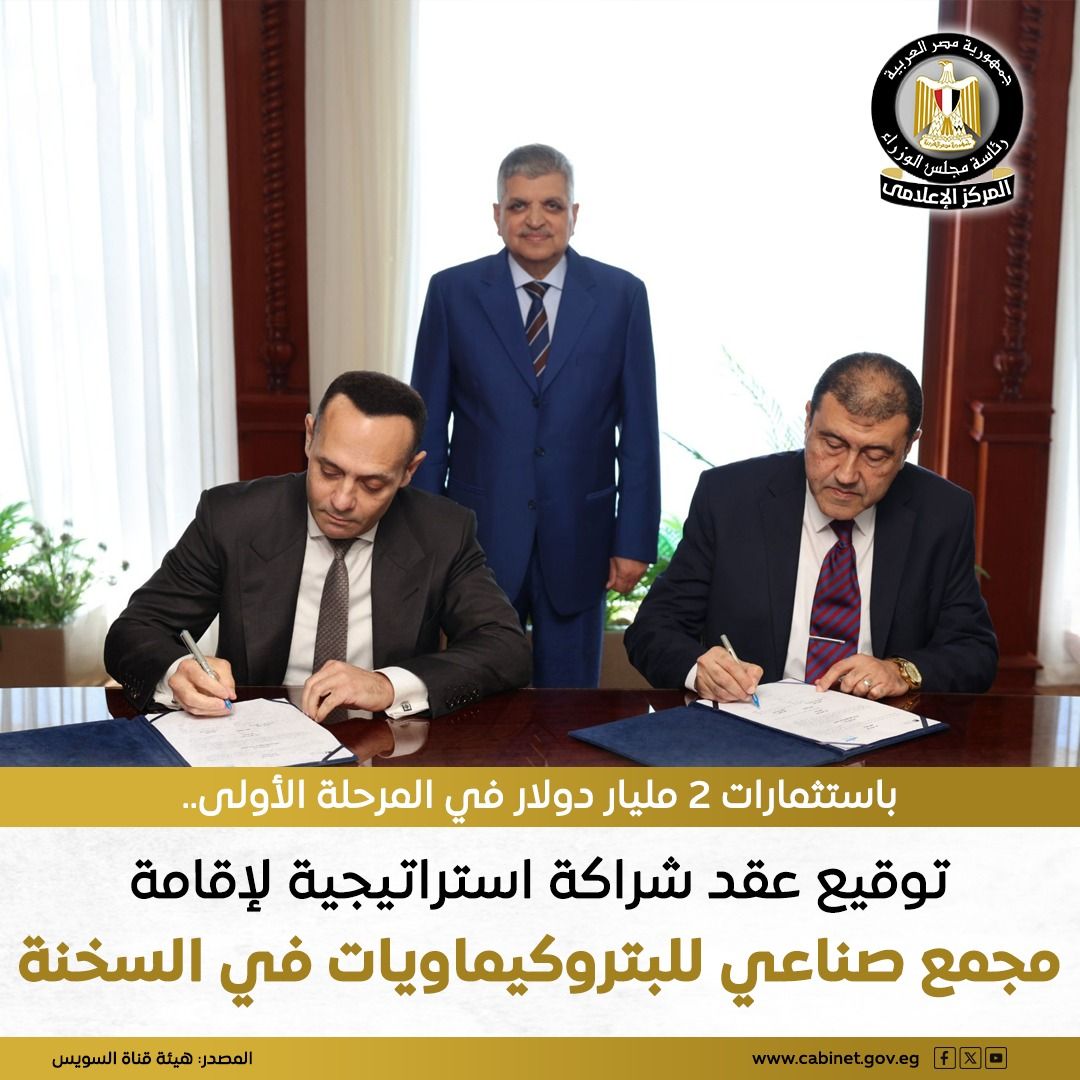 توقيع شراكة استراتيجية لإقامة مجمع بتروكيماويات بالعين السخنة باستثمارات 4.5 مليار دولار