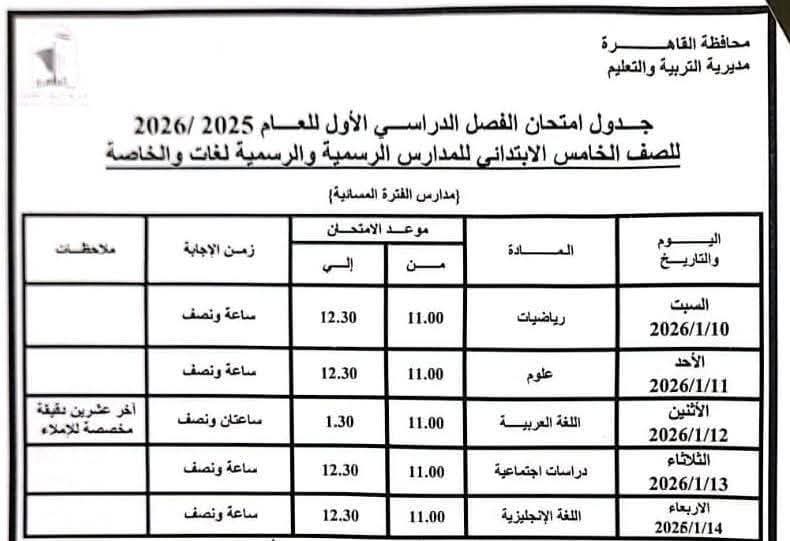 ننشر جداول امتحانات الفصل الدراسي الأول للعام الدراسي 2026 بالقاهرة