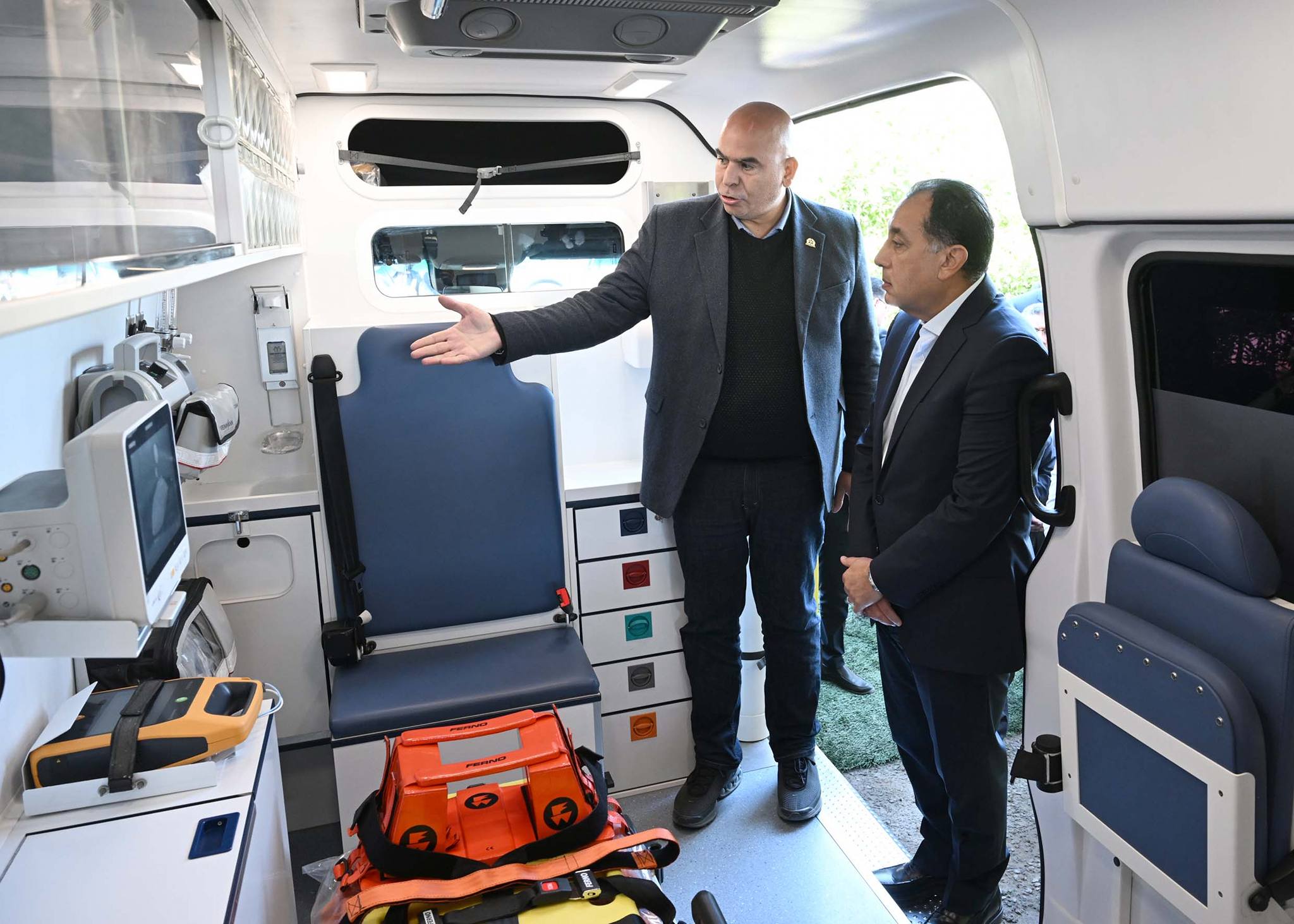 وتفقد رئيس الوزراء نموذجا لإحدى سيارات الإسعاف، ضمن سيارات الخدمة بنقطة الإسعاف، واطلع على الإمكانات المتوافرة بها لخدمة أهالي القرى التي تخدمها، وخدمة الطرق السريعة والزراعية.