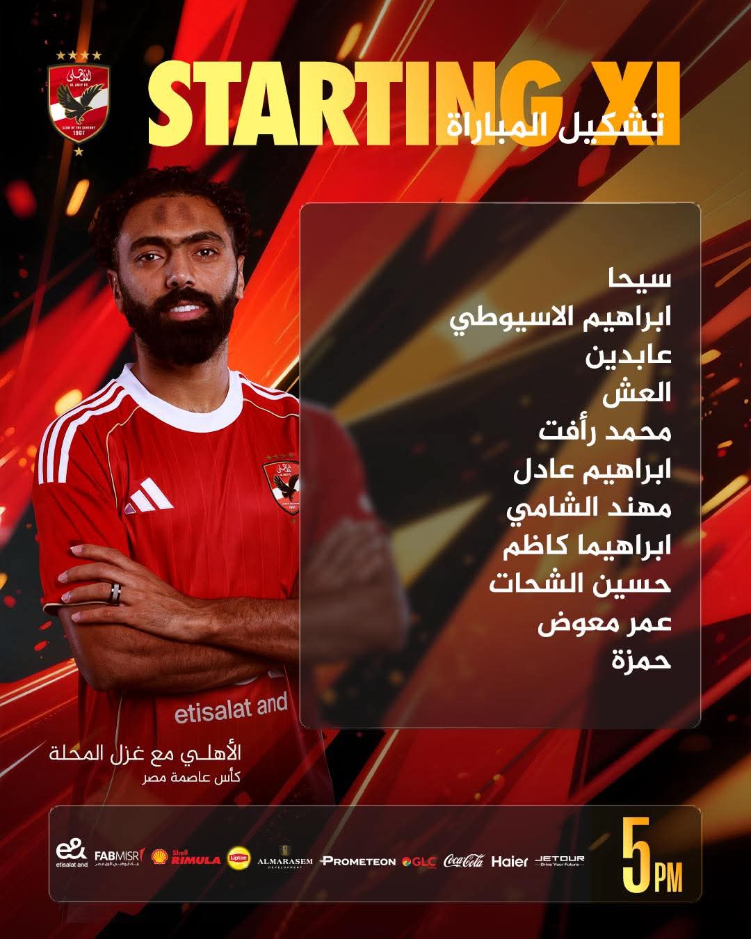 ويأتي تشكيل الأهلي كالأتي: