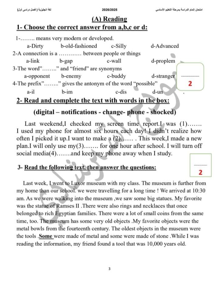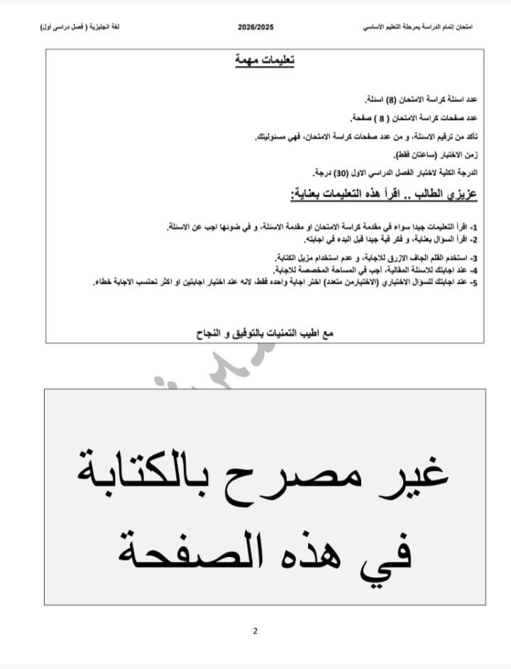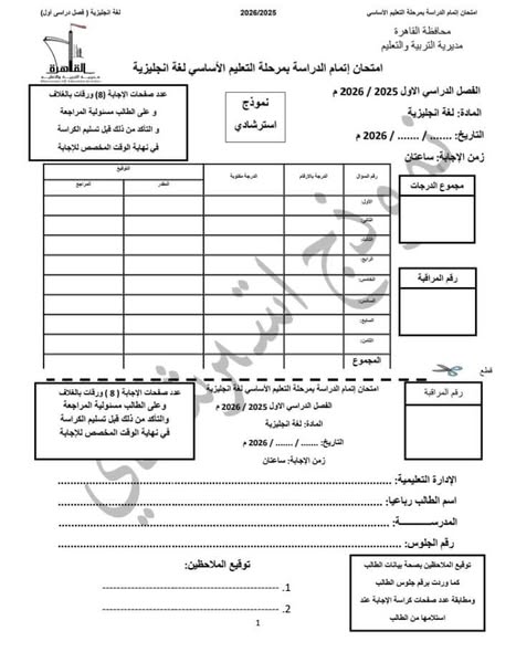 تواصل مديرية التربية والتعليم بالقاهرة نشر النماذج الاسترشادية بنظام البوكليت في مادة اللغة الإنجليزية لطلاب الشهادة الإعدادية، وذلك في إطار الاستعداد لامتحانات الفصل الدراسي الأول للعام الدراسي 2025/2026.