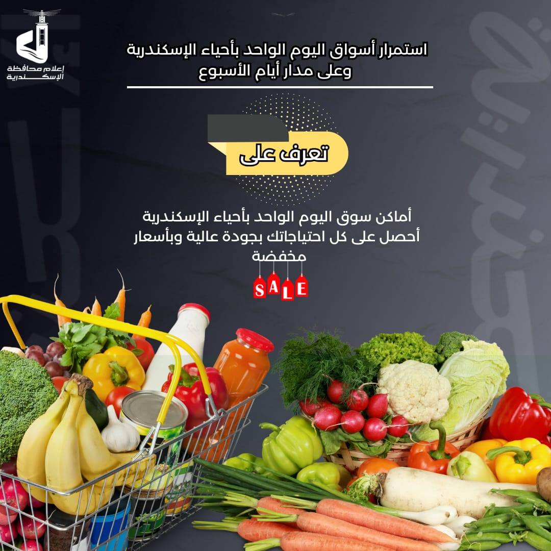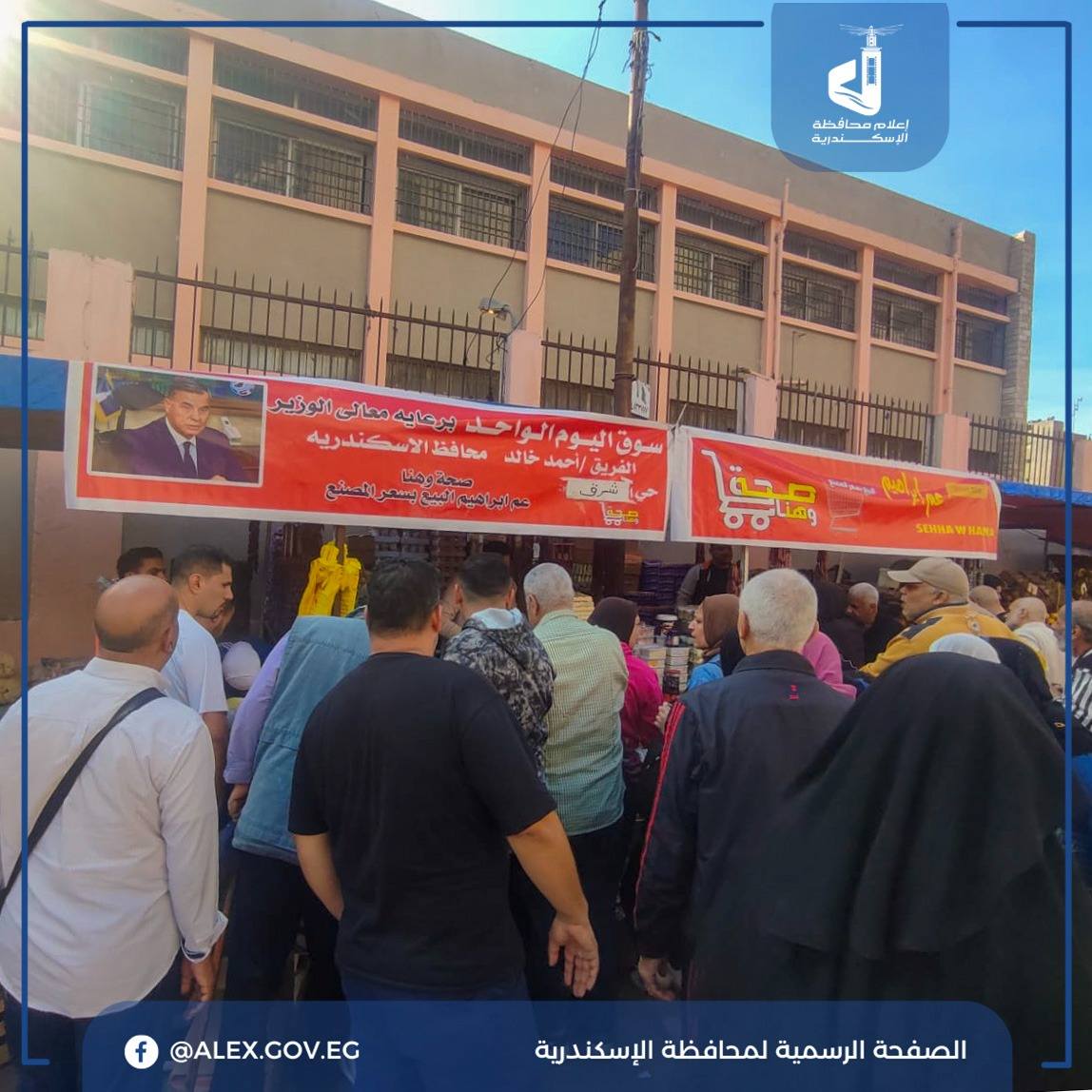 تنفيذًا لتوجيهات القيادة السياسية بشأن رفع العبء عن كاهل المواطنين وتوفير السلع الأساسية بأسعار مخفضة وجودة مناسبة، وجه الفريق أحمد خالد حسن سعيد، محافظ الإسكندرية، باستمرار إقامة أسواق اليوم الواحد على مدار أيام الأسبوع بمختلف أحياء المحافظة، وذلك بهدف تقليل حلقات التداول الوسيطة وخفض الأسعار.