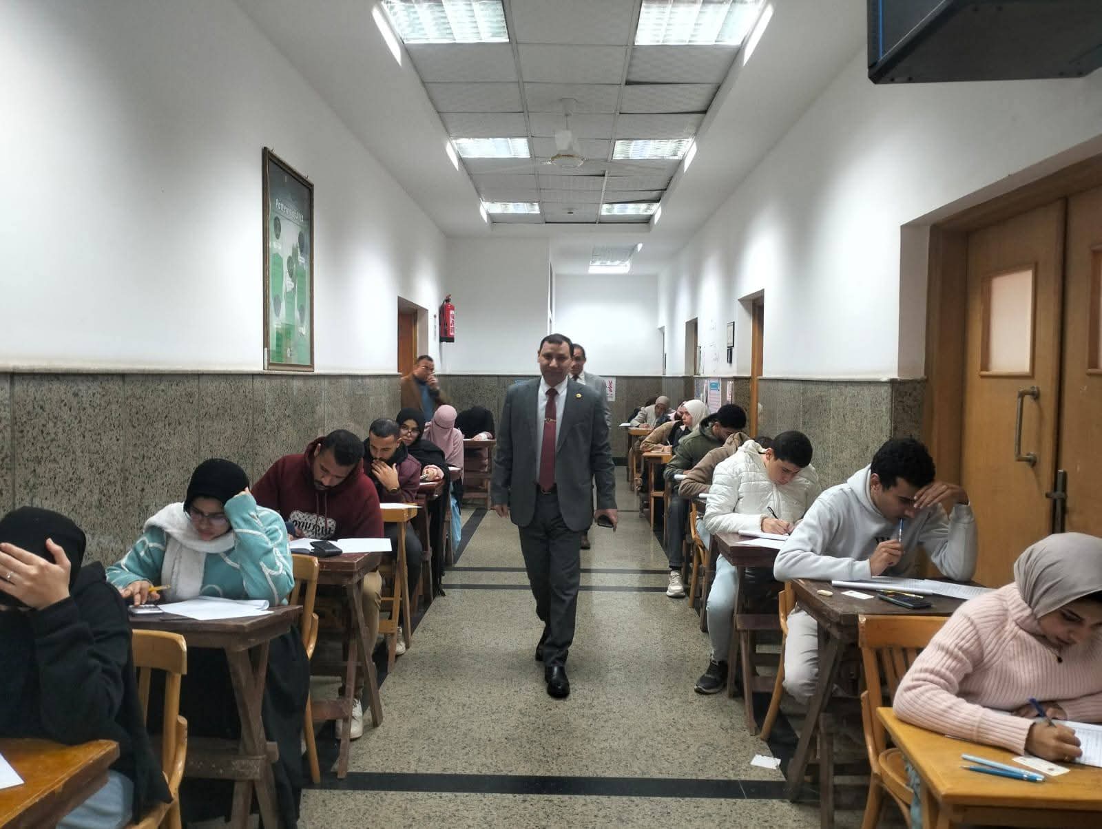 وفي إطار المتابعة الميدانية المستمرة، أجرى الأستاذ الدكتور ياسر رماح، عميد الكلية، جولة تفقدية داخل لجان الامتحانات للاطمئنان على انتظام سير العملية الامتحانية. وخلال جولته، شدد على توفير كافة سبل الراحة والأجواء الملائمة للطلاب، مؤكداً أن الكلية تضع مصلحة الطالب في المقام الأول مع الالتزام الصارم بالقواعد المنظمة.
