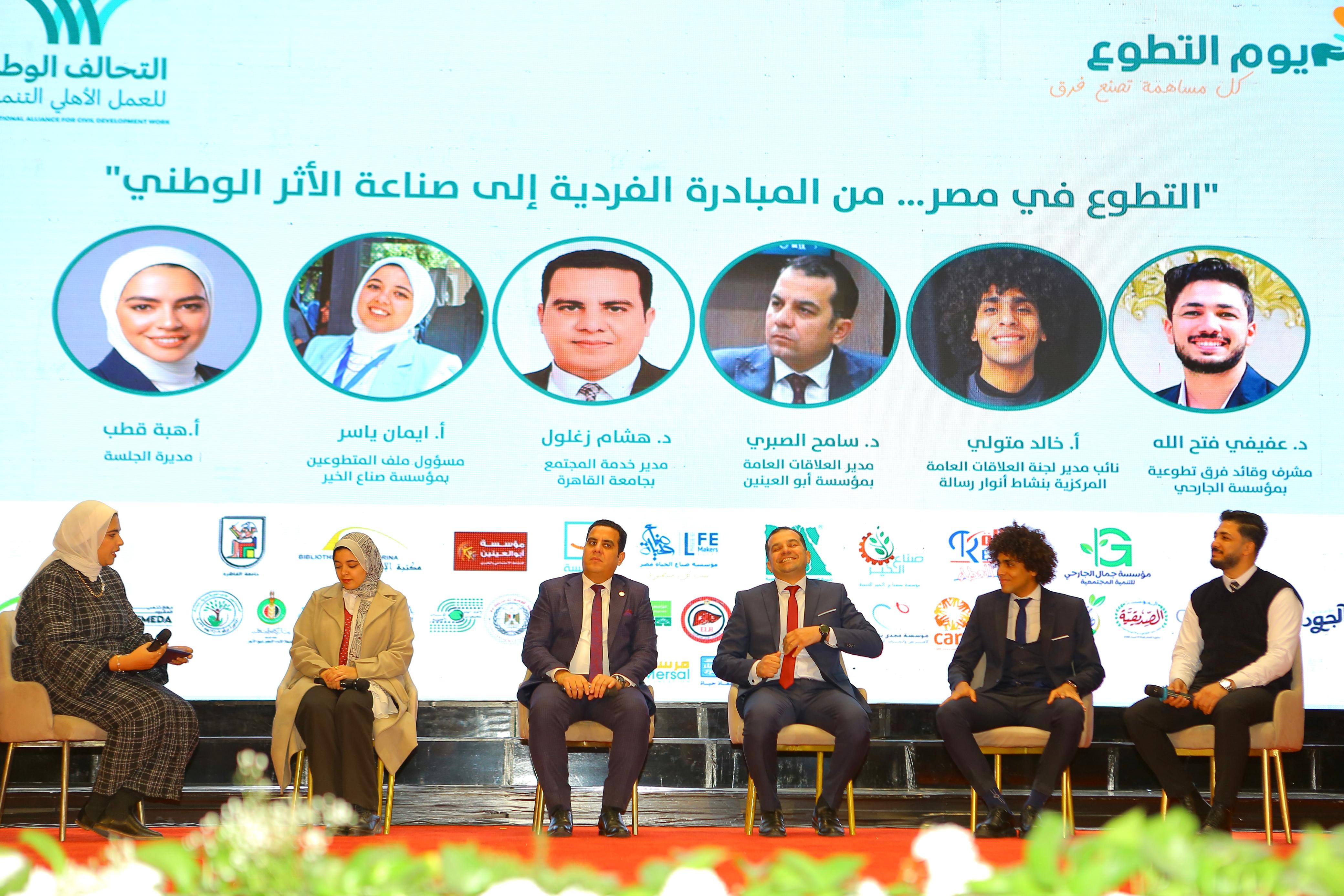عرض عدد من متطوعي مؤسسة «صناع الخير» للتنمية، عضو التحالف الوطني للعمل الأهلي التنموي، تجربتهم في العمل التطوعي في احتفالية اليوم العالمي للتطوع بجامعة القاهرة، والتي تضمنت مجموعة مختلفة من الأنشطة، بحضور السفيرة نبيلة مكرم، رئيس الأمانة الفنية للتحالف الوطني، والدكتور مصطفى زمزم، رئيس مجلس أمناء المؤسسة، وعدد من قيادات المجتمع المدني.