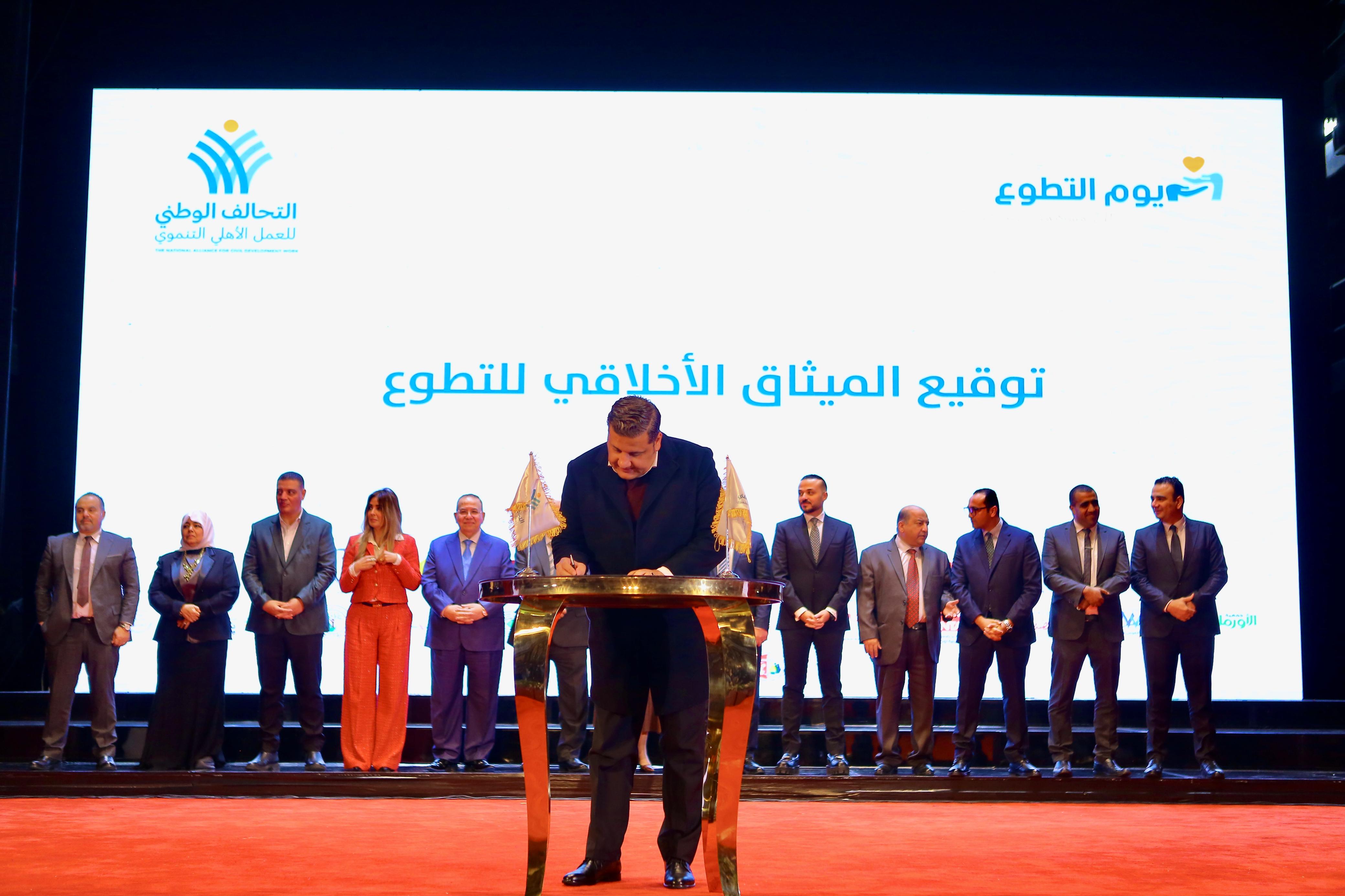 خلال الاحتفالية، وقع الدكتور مصطفى زمزم، على الميثاق الأخلاقي للعمل التطوعي، بعد أن شارك في إعداد بنوده مع مؤسسات المجتمع المدني.