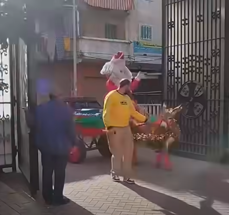 بابا نويل على عربة كارو يشعل السوشيال ميديا