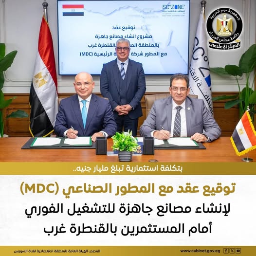 بتكلفة استثمارية مليار جنيه.. توقيع عقد مع MDC لإنشاء مصانع جاهزة بالقنطرة غرب
