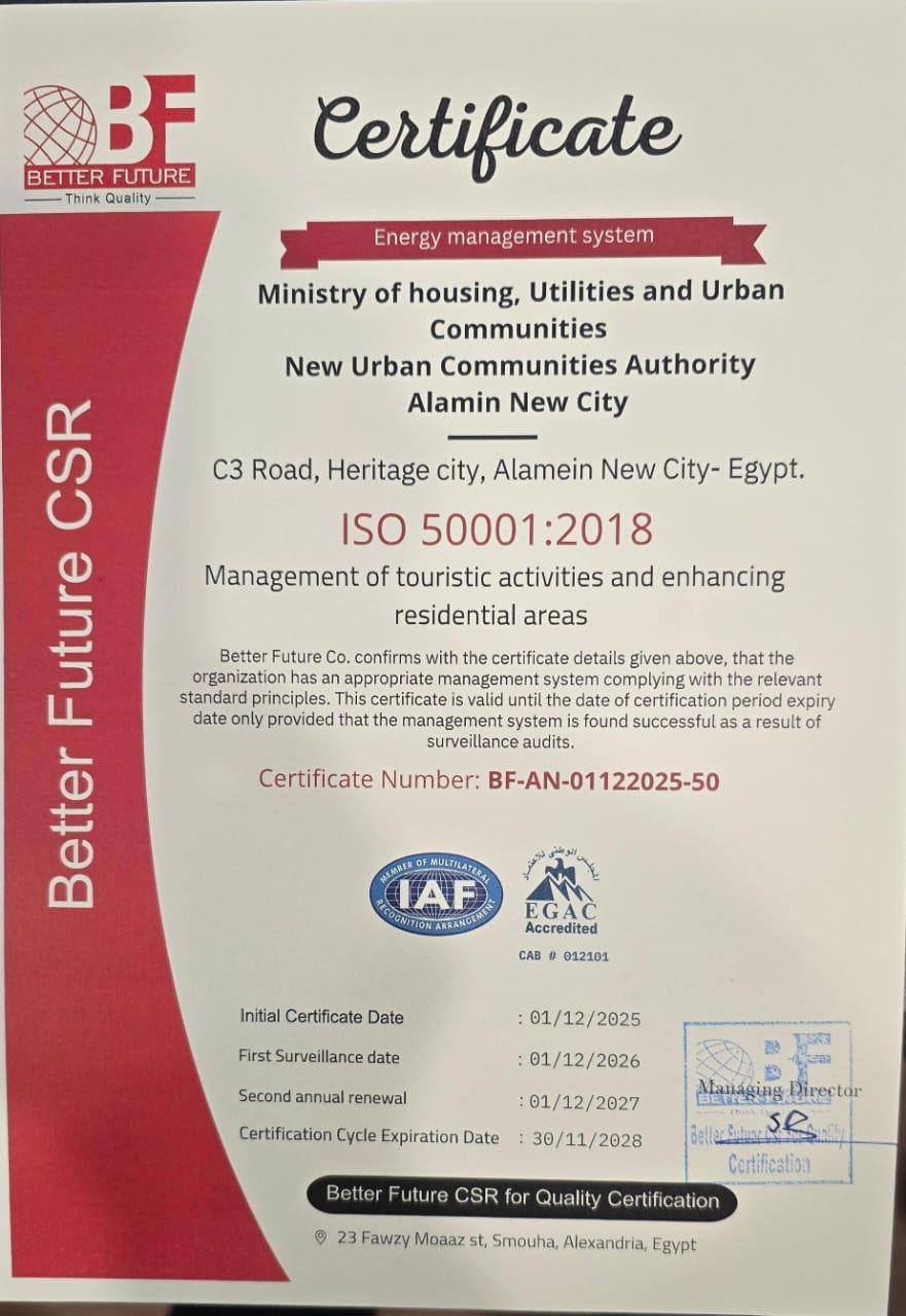 وأضاف أن هذا الإعتماد الدولي يأتي تنفيذًا لتوجيهات الدولة ووزارة الإسكان بالإرتقاء بمنظومة العمل داخل أجهزة المدن الجديدة، وتحويلها إلى مؤسسات إحترافية تُدار وفق نظم حديثة قادرة على مواكبة حجم المشروعات القومية والتنموية الكبرى التي تشهدها مدينة العلمين الجديدة.