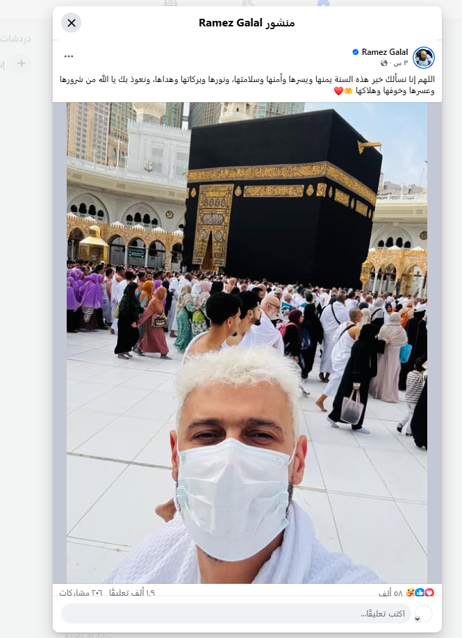بدأ الفنان رامز جلال عام 2026 في أطهر بقاع الأرض، حيث قام بتأدية مناسك العمرة.