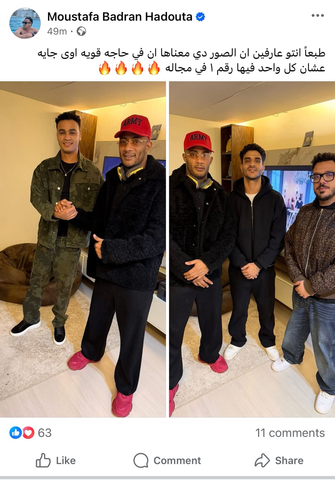 وعلق على الصور قائلا: طبعاً انتوا عارفين إن الصور دي معناها إن في حاجة قوية أوي جاية عشان كل واحد فيها رقم 1 في مجاله.