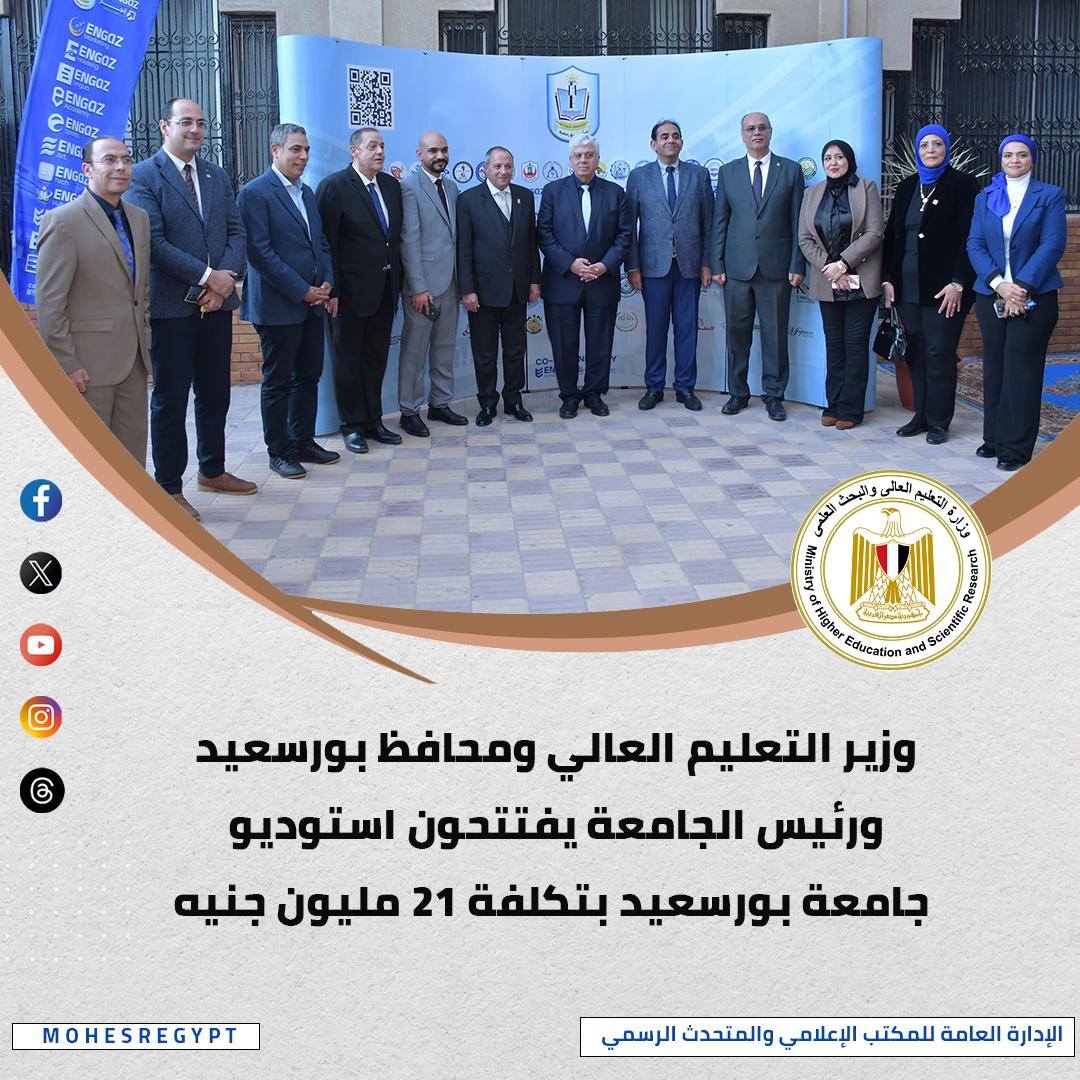 افتتح الدكتور أيمن عاشور وزير التعليم العالي والبحث العلمي، استوديو جامعة بورسعيد بكلية التربية النوعية، بعد تطويره وفق أحدث المواصفات الفنية، وأكد الوزير أن الاستوديوهات تتيح للطلاب فرصًا عملية لاكتساب الخبرات في مجالات الإخراج، والتقديم، والمونتاج، وصناعة المحتوى الرقمي، بما يعزز جاهزيتهم للانخراط في سوق العمل بثقة وكفاءة، كما تفقد الوزير المعارض التخصصية لقسم التربية الفنية والذي ضم العديد من المنتجات الفنية من مشغولات الجلد الطبيعي والخزف والمشغولات المعدنية والخرز والحلى والديكوباج، بالإضافة لمعرض قسم الاقتصاد المنزلي والذي اشتمل على العديد من الملابس والمنتجات اليدوية من إنتاج طلاب القسم.