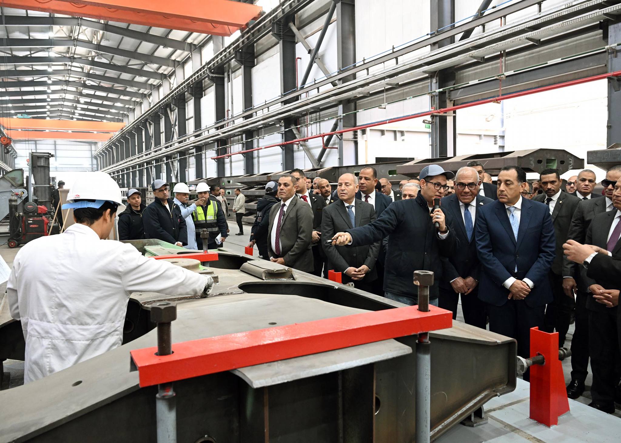 ثم توجه رئيس الوزراء إلى مركز القطع بالبلازما، حيث شرح المهندس أحمد إبراهيم، مكونات المركز التي تشمل روبوتات لحام وقطع تعمل بالذكاء الاصطناعي، بالإضافة إلى ماكينات قطع بالبلازما، ومخزن الخامات.