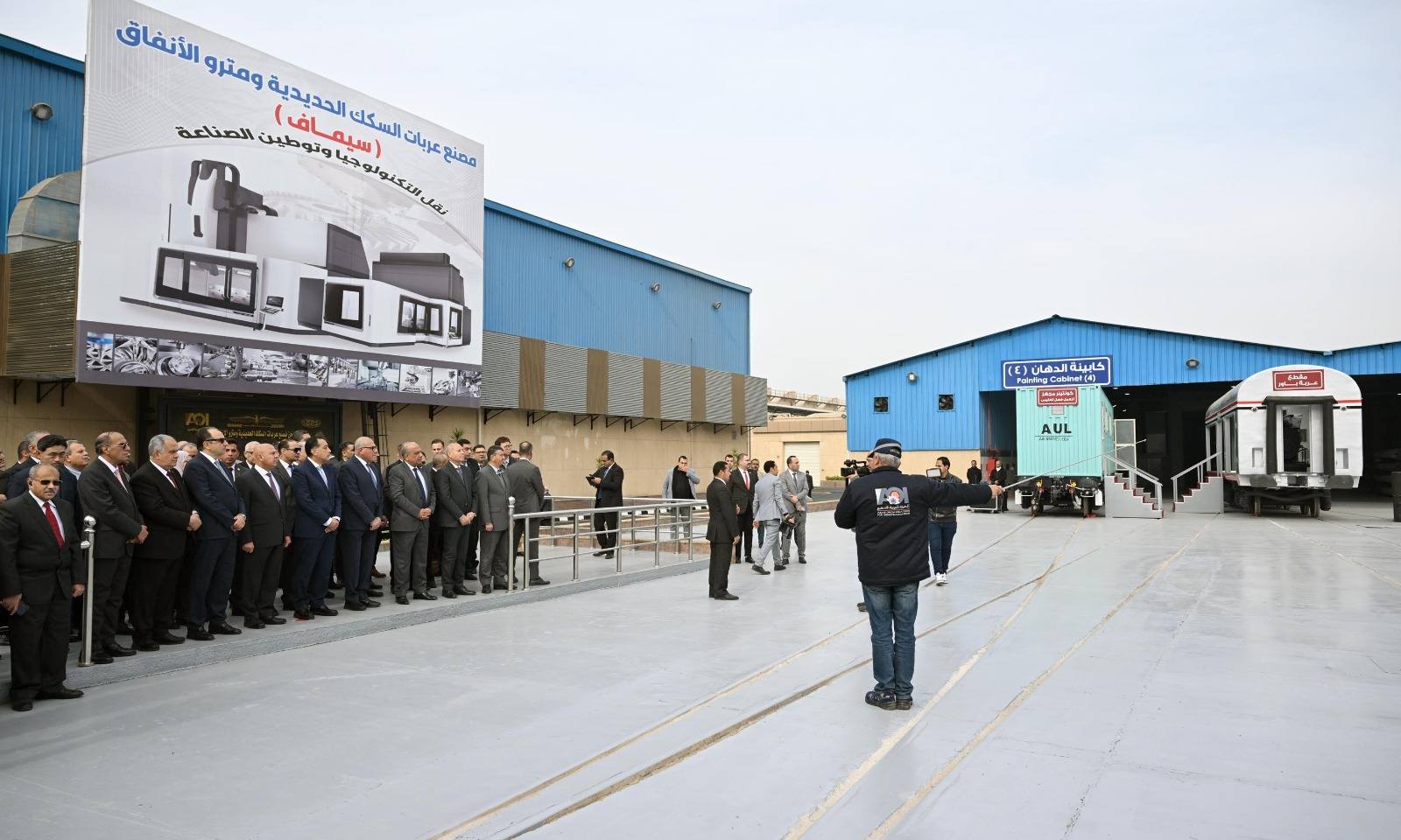 كما تفقد رئيس مجلس الوزراء مصنع عربات البضائع، حيث أوضح رئيس الهيئة العربية للتصنيع أن مصنع "سيماف" نجح في إنهاء وتسليم 10 قطارات مترو أنفاق مكيفة (بإجمالي 80 عربة) للخط الثالث بالقاهرة بالتعاون مع شركة "هيونداي روتيم" الكورية، كما تم تسليم 375 عربة سطح ناقلة للحاويات ضمن عقد لتوريد 1000 عربة بضائع متنوعة، بالتوازي مع المشاركة في مناقصات دولية في أوغندا وتونس، مدعوماً بحصول المصنع على شهادة الجودة العالمية للصناعات السككية التي تؤهله للتصدير للخارج.
