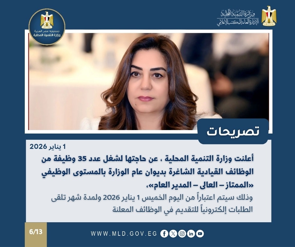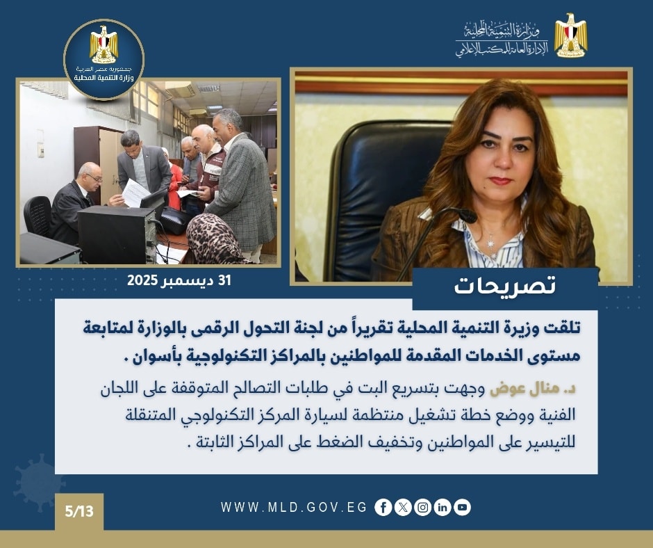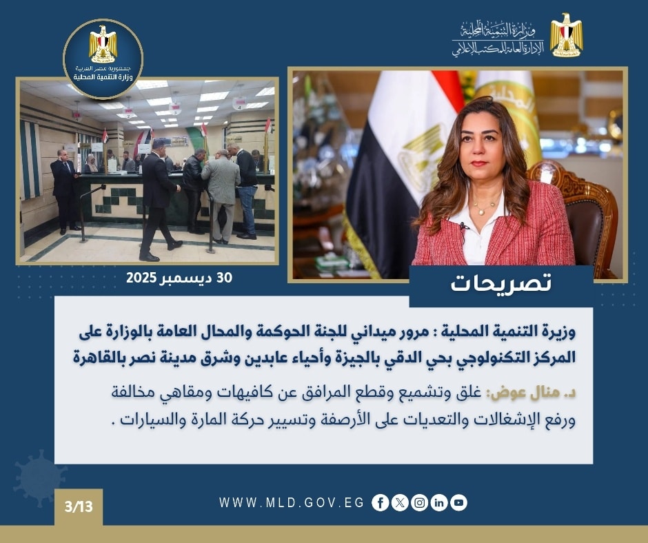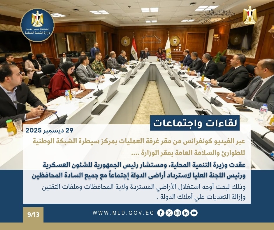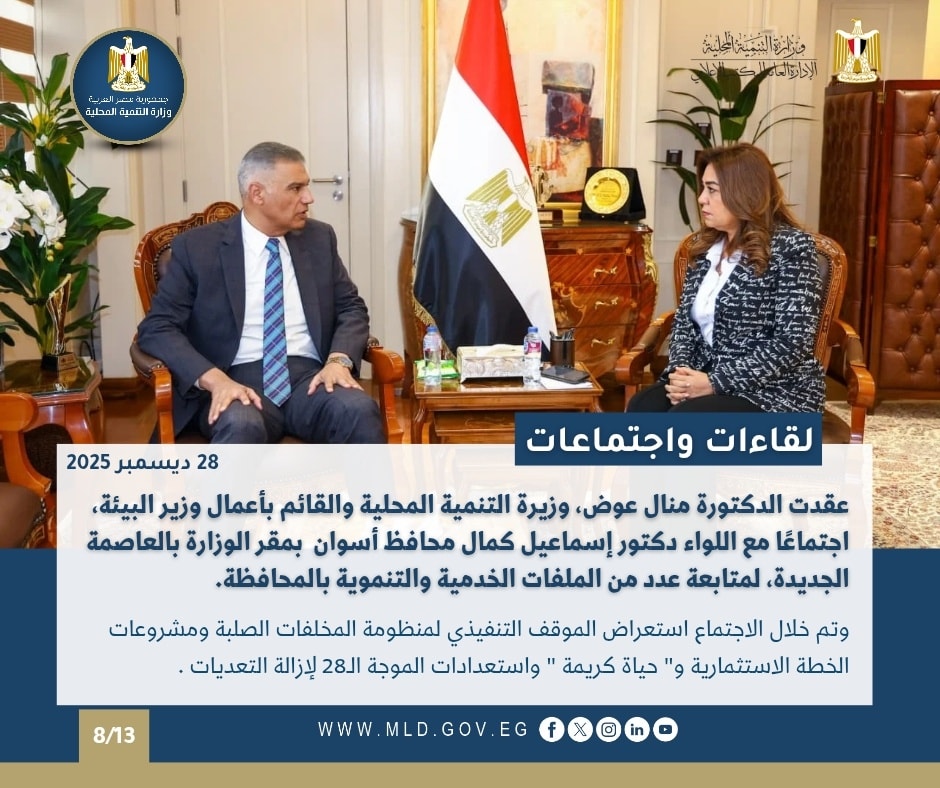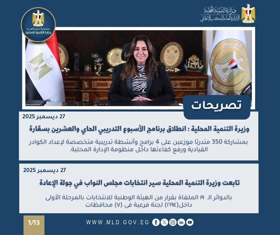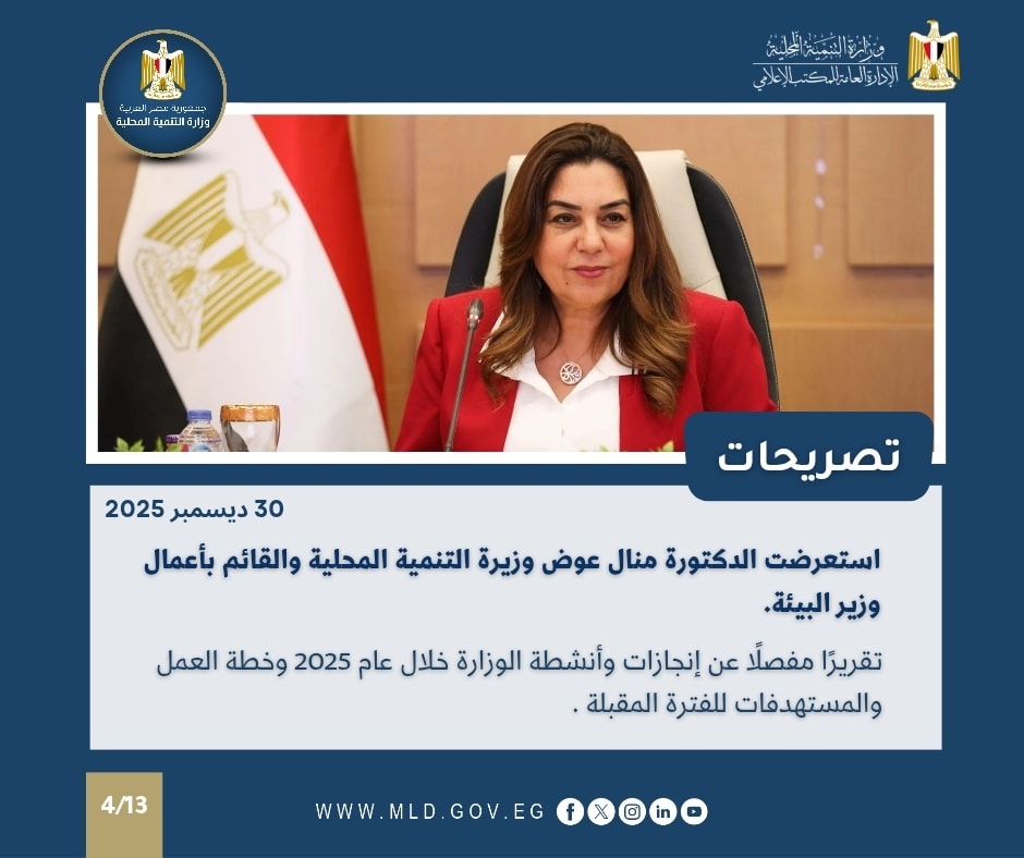 نشرة الحصاد الأسبوعي لرصد أنشطة وزارة التنمية المحلية (26 ديسمبر 2025 : 1 يناير 2026)