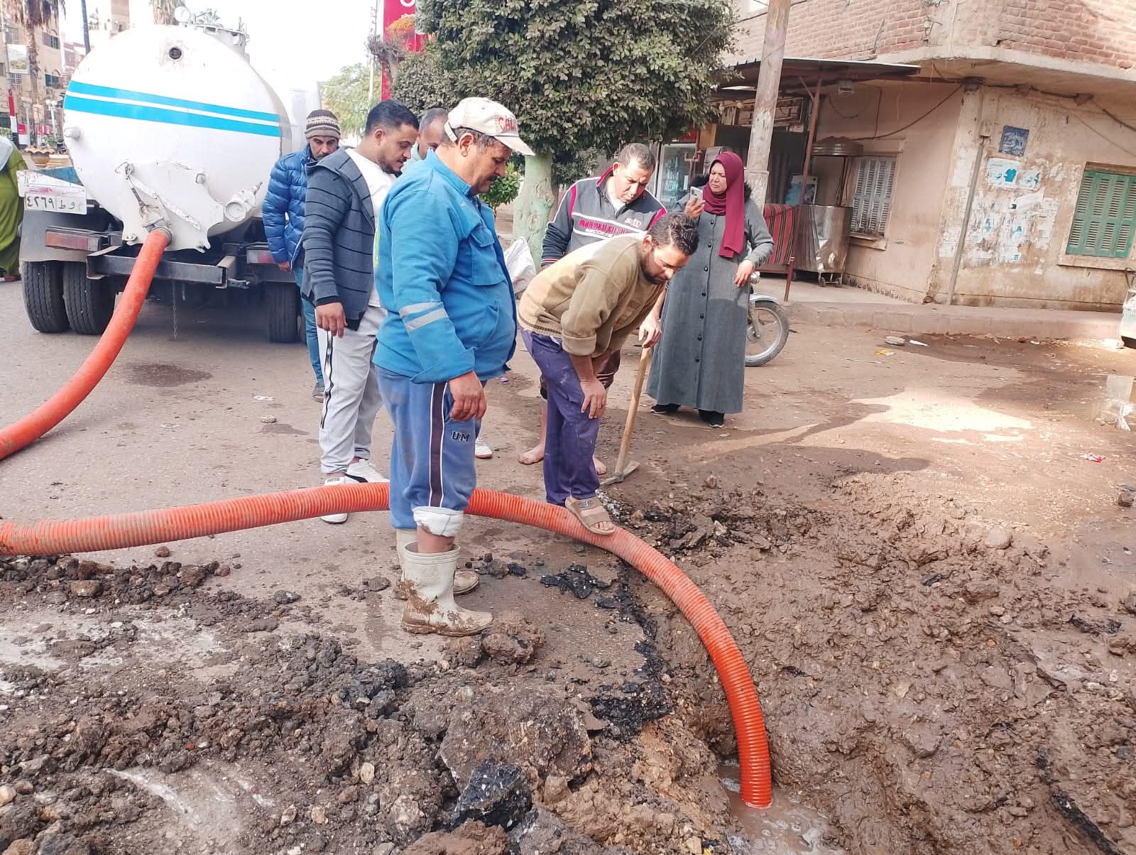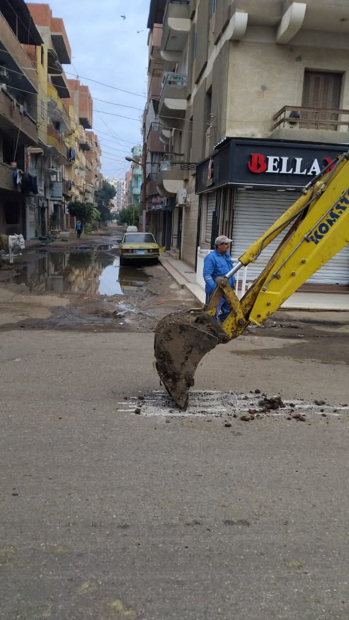 السيطرة على كسر مفاجئ بخط مياه أمام بنك مصر في تلا بالمنوفية