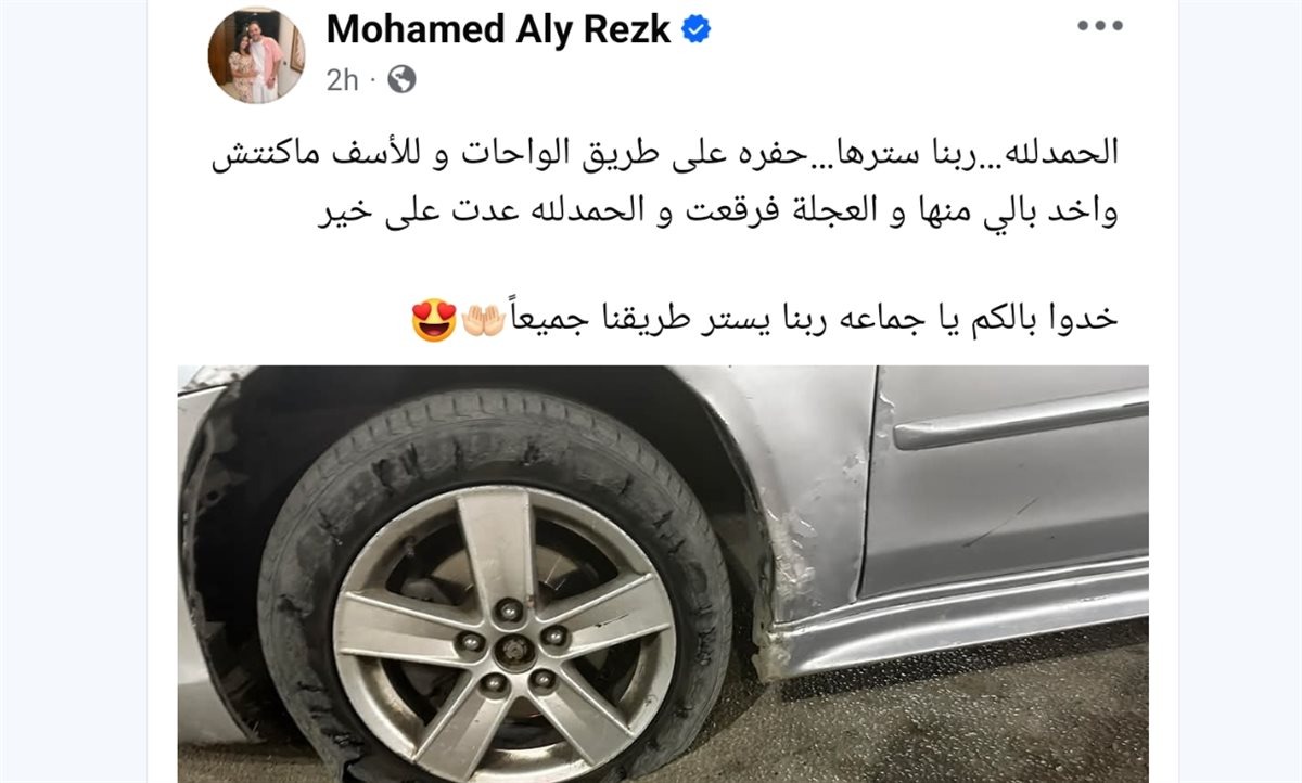 وأعلن محمد علي رزق تعرضه لحادث، حيث كتب عبر حسابه بموقع التواصل الاجتماعي “فيسبوك”، والذي جاء كالتالي: “الحمدلله ربنا سترها، حفره على طريق الواحات و للأسف ماكنتش واخد بالي منها و العجلة فرقعت و الحمدلله عدت على خير، خدوا بالكم يا جماعه ربنا يستر طريقنا جميعاً”.