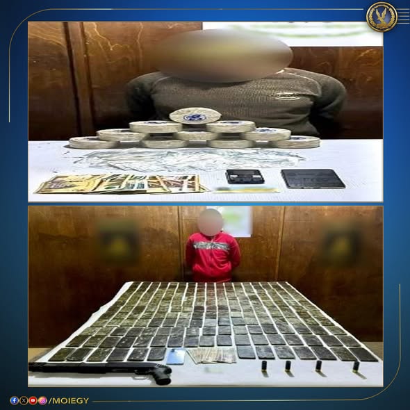 وفي سياق أخر، في إطار جهود وزارة الداخلية لمواصلة توجيه الضربات الاستباقية ضد البؤر الإجرامية وجالبي ومتجري المواد المخدرة وحائزي الأسلحة النارية غير المرخصة.
