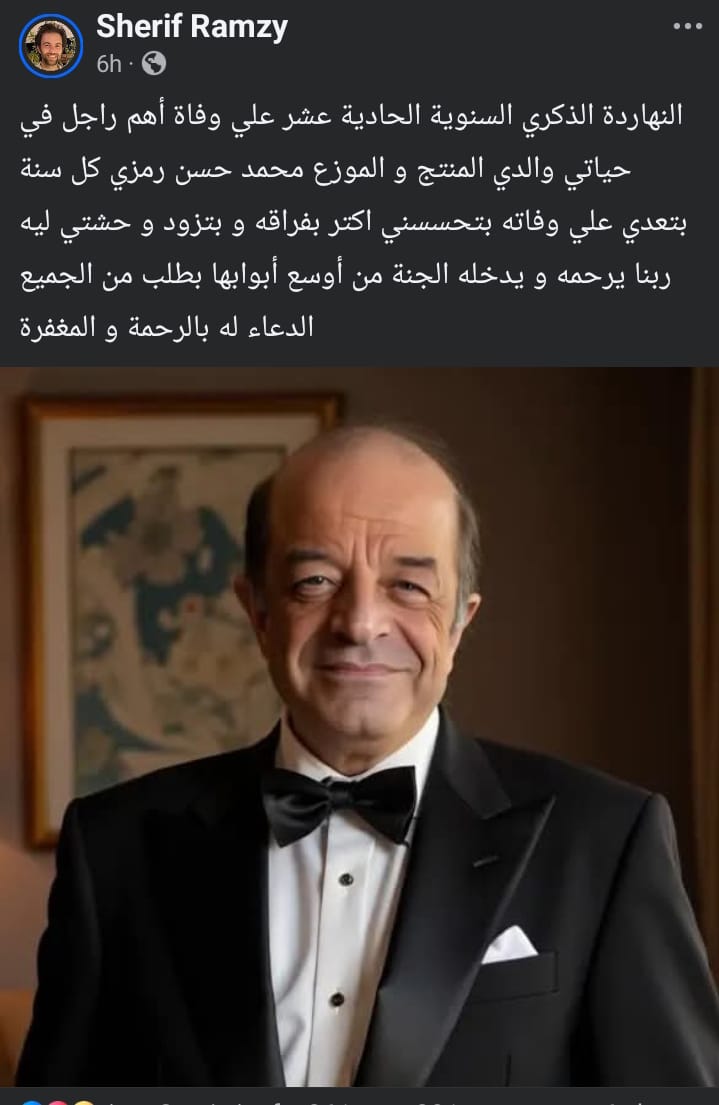 أحيا الفنان شريف رمزي الذكرى الحادية عشر لوفاة والده المنتج والموزع الراحل محمد حسن رمزي.