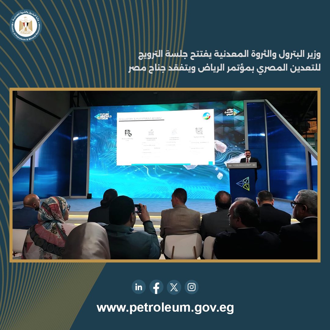 وزير البترول يفتتح جلسة الترويج للتعدين المصري بمؤتمر الرياض ويتفقد جناح مصر