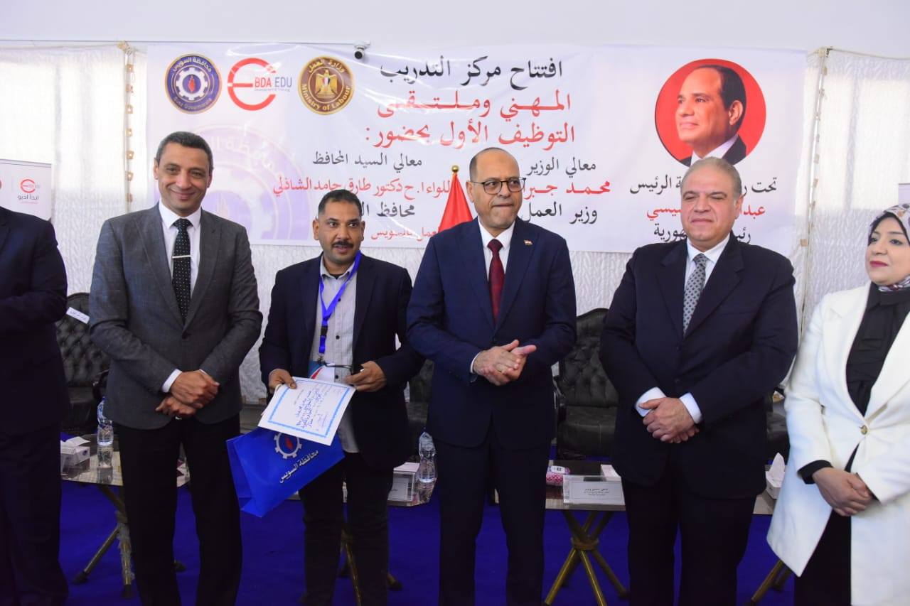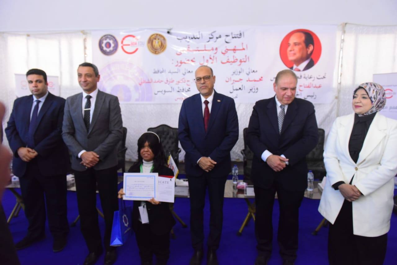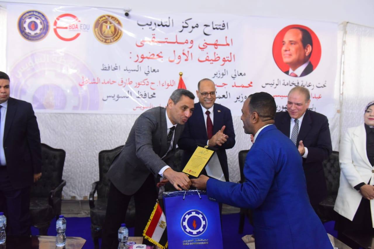 كما شهد الافتتاح قيام الوزير ومحافظ السويس بتسليم شهادات التخرج لأوائل الخريجين من عدد من الدورات التدريبية المتخصصة، في رسالة واضحة تؤكد اهتمام الدولة بتأهيل وتنمية الكوادر البشرية، وربط منظومة التدريب باحتياجات سوق العمل الفعلية، بما يسهم في تحسين فرص التشغيل وتحقيق التنمية المستدامة.