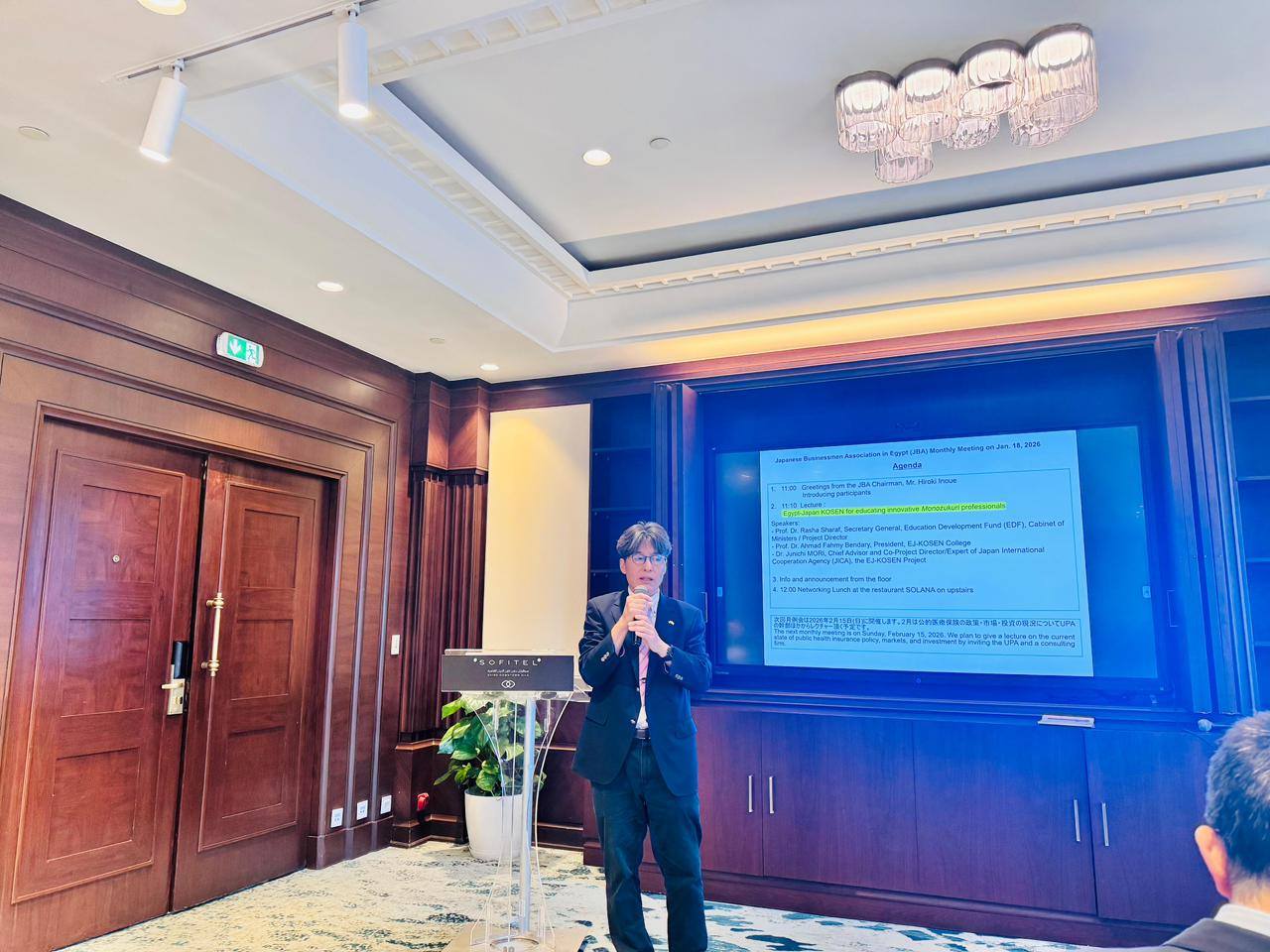 من جانبه، استعرض د. موري، مدير مشروع الكوزن من الجانب الياباني، طبيعة المعهد المصري الياباني، موضحًا فلسفة التعليم المعتمدة على الدمج بين الدراسة الأكاديمية والتدريب العملي المكثف، ومواصفات الخريج القادر على العمل بكفاءة عالية في البيئات الصناعية المختلفة، كما تناول إجراءات قبول الطلاب، وبرامج تدريب أعضاء هيئة التدريس وفق المنهج الياباني، إلى جانب الجهود المبذولة لتهيئة البنية التحتية التعليمية والمعامل وورش التدريب بما يتوافق مع المعايير اليابانية.