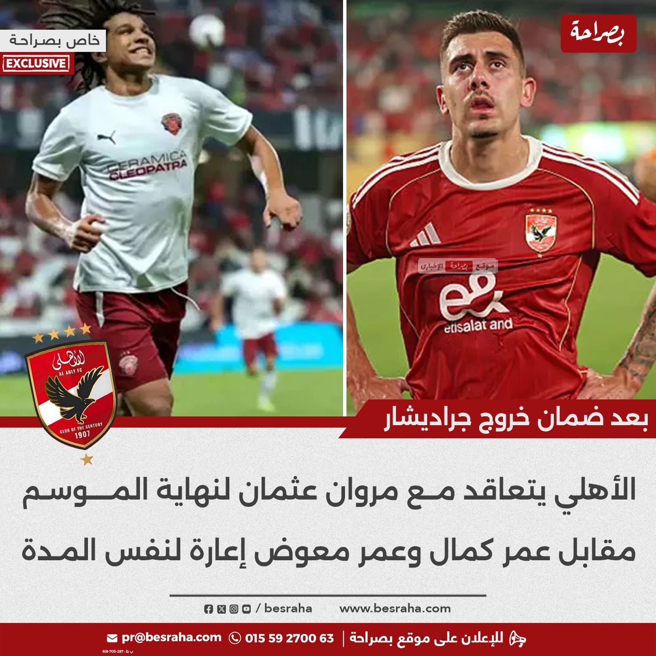 في المقابل، تأتي إعارة عمر كمال وعمر معوض حتى نهاية الموسم، لمنح اللاعبين فرصة المشاركة بشكل منتظم، مع استمرار ارتباطهما التعاقدي بالأهلي بعد انتهاء فترة الإعارة.