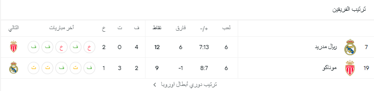 على الجانب الآخر، يقع موناكو بالمركز الـ 19 برصيد 9 نقاط، حيث خاض 6 مبارايات، حقق الفوز في مباراتين وخسر في مباراة واحدة، بينما تعادل خلال 3 مباريات.