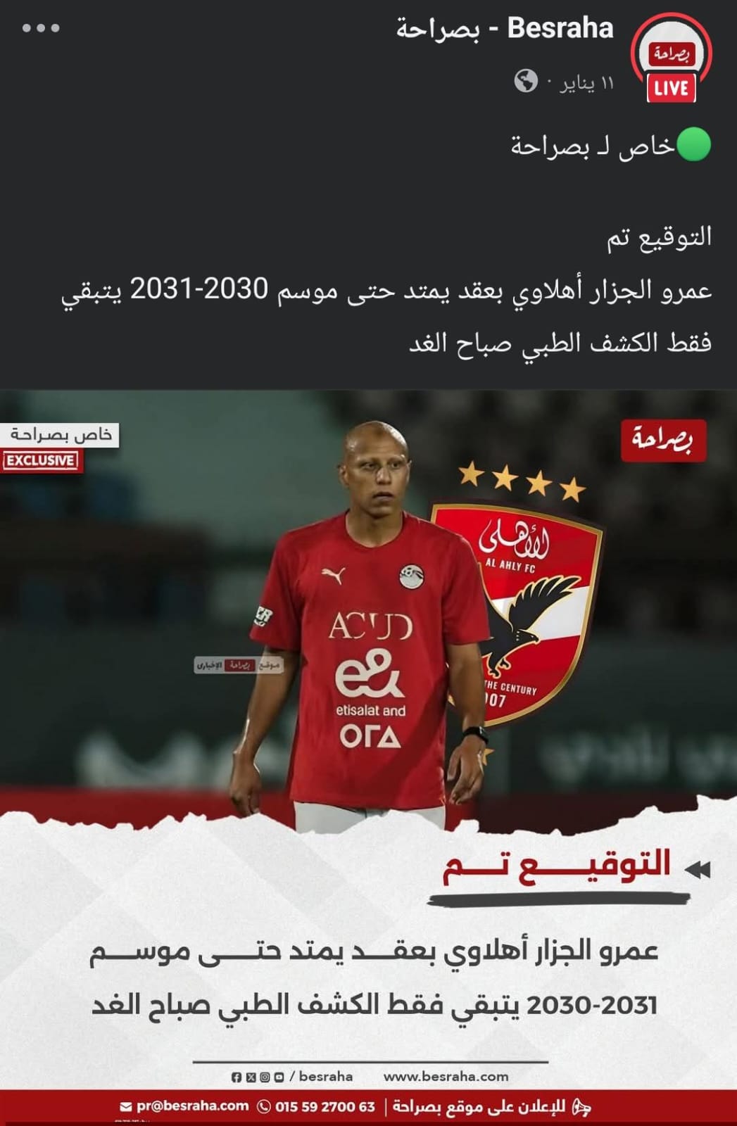 تأكيدًا لــ بصراحة…الأهلي يعلن عن التعاقد مع عمرو الجزار