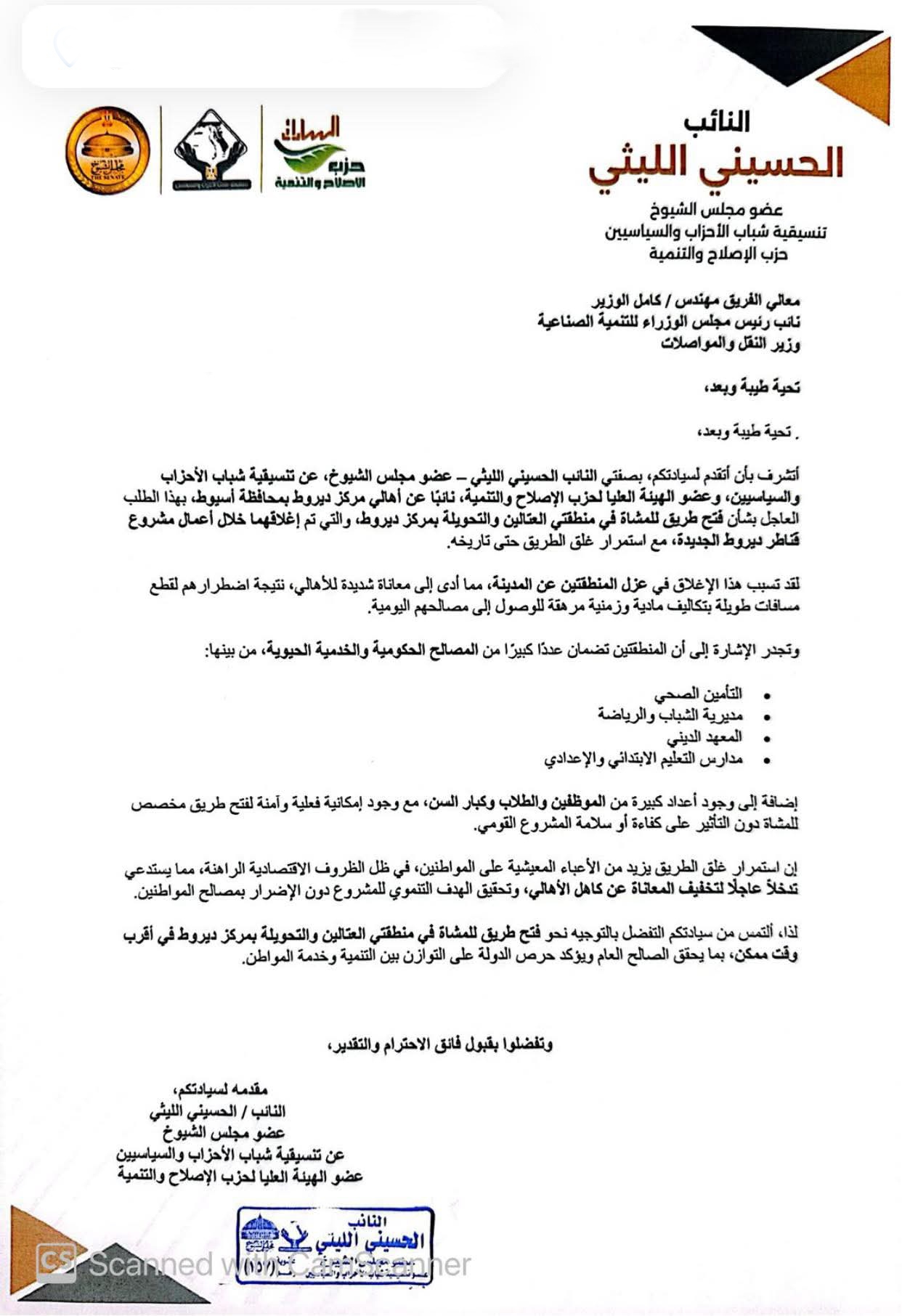 "عزلة العتالين والتحويلة".. الحسيني الليثي يضع "معاناة ديروط" على مكتب وزير النقل ويطالب بفتح ممر المشاة فوراً