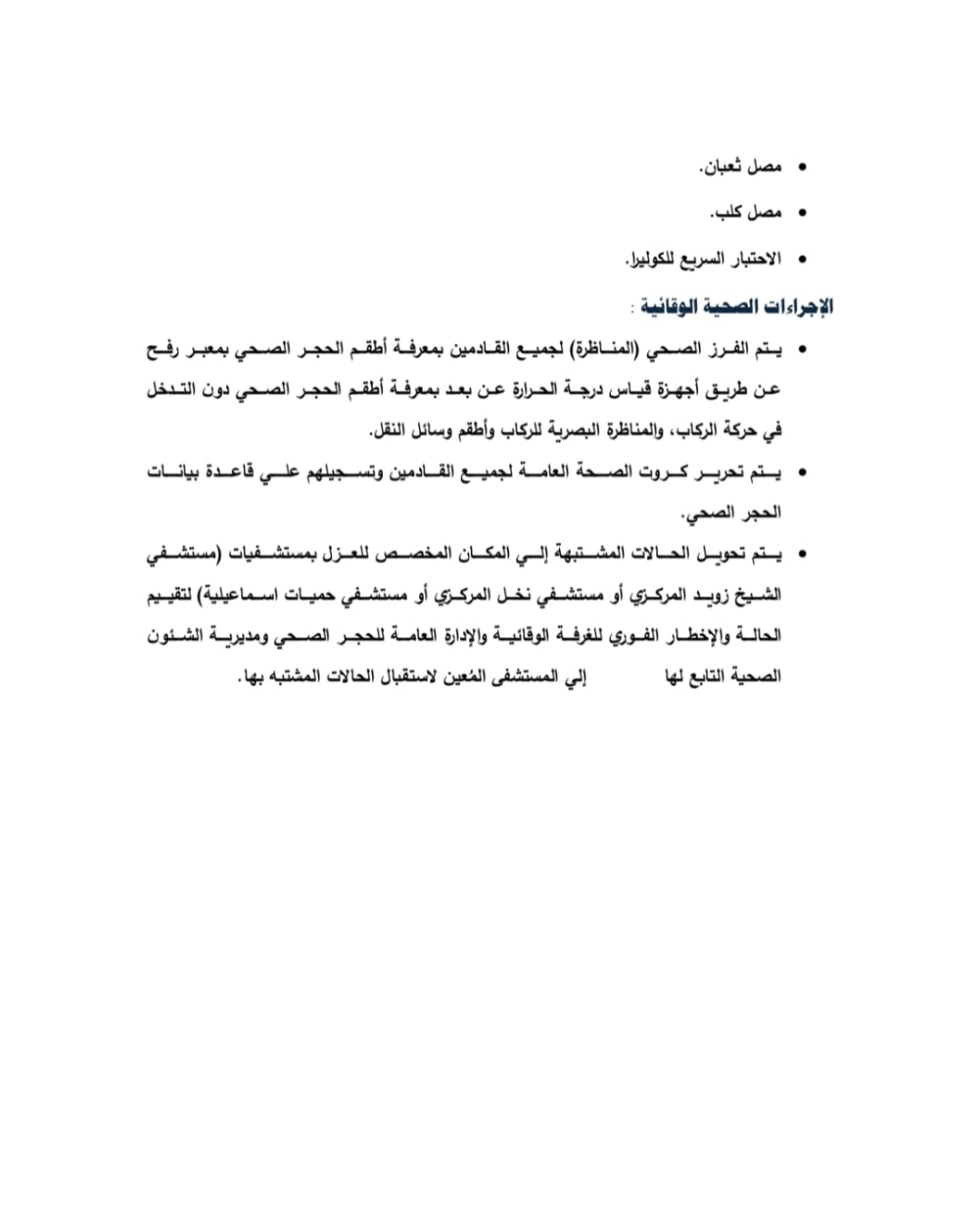 -التنسيق مع غرفة الأزمات بوزارة الصحة في القاهرة لنقل الحالات الحرجة إلى المستشفيات المركزية عند الحاجة.