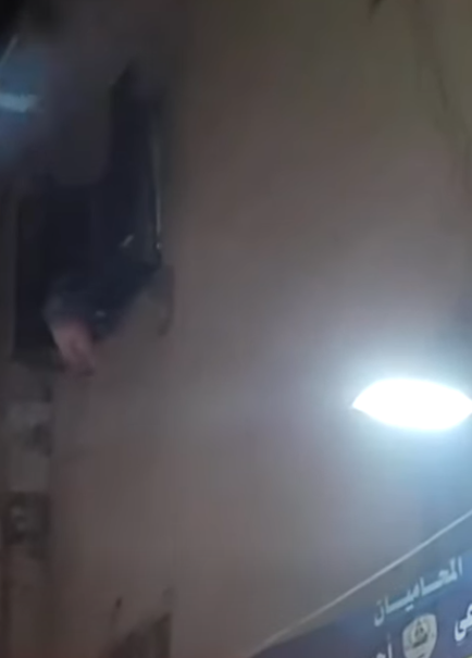 وظهر في الفيديو، السيدة وهي تمسك بالصغار وتلقي بهم من علو، وسط صراخ واستغاثات الأهالي المتواجدين أسفل العقار، في مشهد أثار حالة من الذهول والصدمة بين المتابعين.
