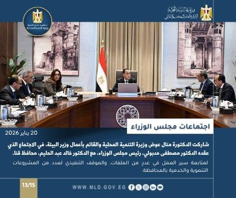 كما شاركت الدكتورة منال عوض وزيرة التنمية المحلية والقائم بأعمال وزير البيئة، في الاجتماع الذي عقده الدكتور مصطفى مدبولي، رئيس مجلس الوزراء، لاستعراض إجراءات التعامل مع الحيوانات الضالة، وذلك بحضور علاء الدين فاروق، وزير الزراعة واستصلاح الأراضي، والدكتور حامد موسى، رئيس الهيئة العامة للخدمات البيطرية، وأيمن عبد الموجود، الوكيل الدائم لوزارة التضامن الاجتماعي.