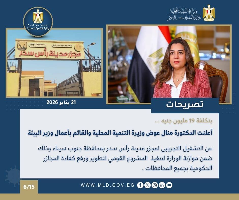وزيرة التنمية المحلية تطلق التحصيل الإلكتروني وتفتتح حديقة كابريتاج وتشغّل مجزر رأس سدر تجريبيًا